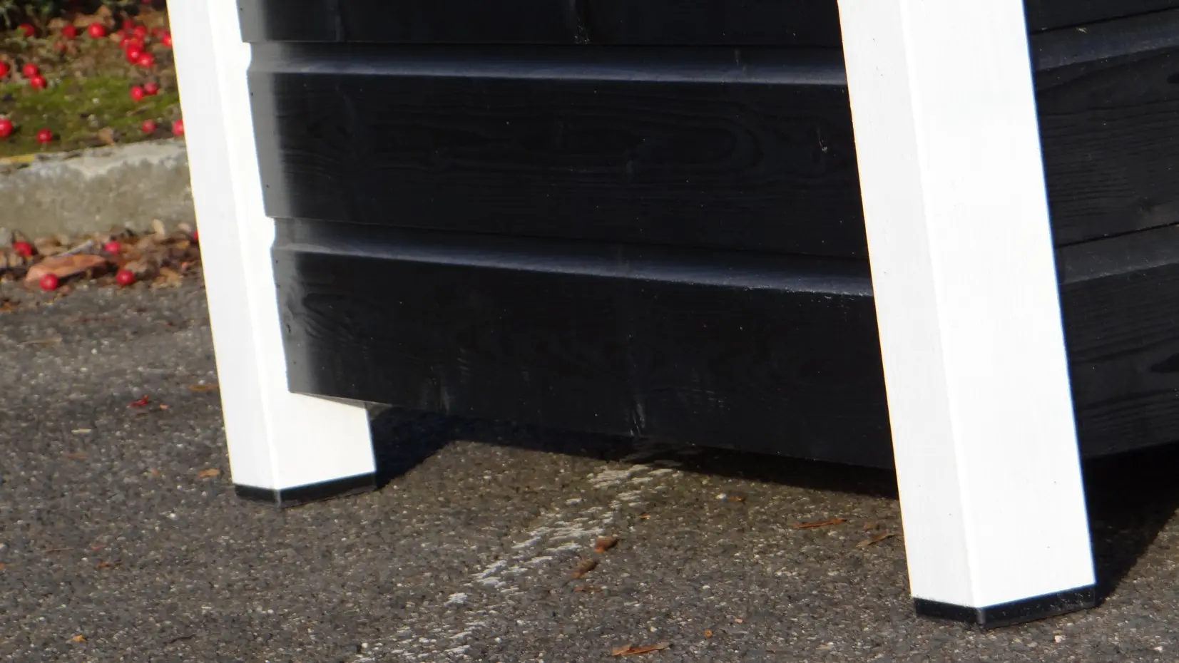 - La niche a des pieds en plastique noir, ce qui la rend plus facile à déplacer, et la niche sera mieux protégée contre l'humidité