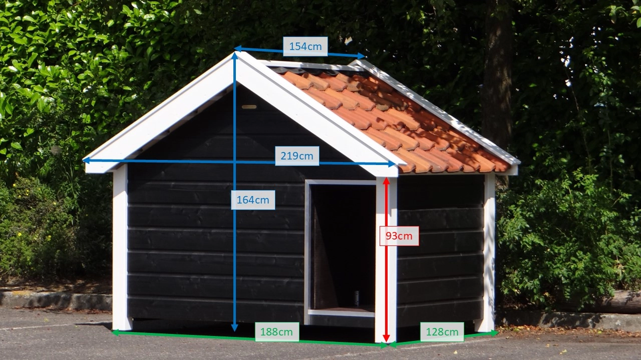 | Dimensions extérieures incluant le toit (LxPxH) | 219x154x164cm |