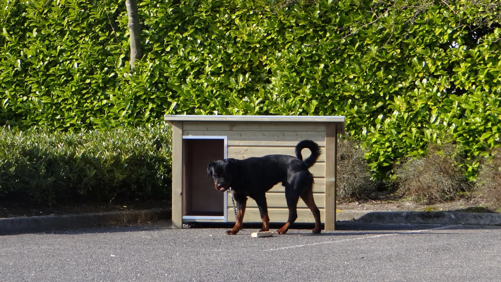 - N'aboie pas, mais mord : chenil avec toit fermé