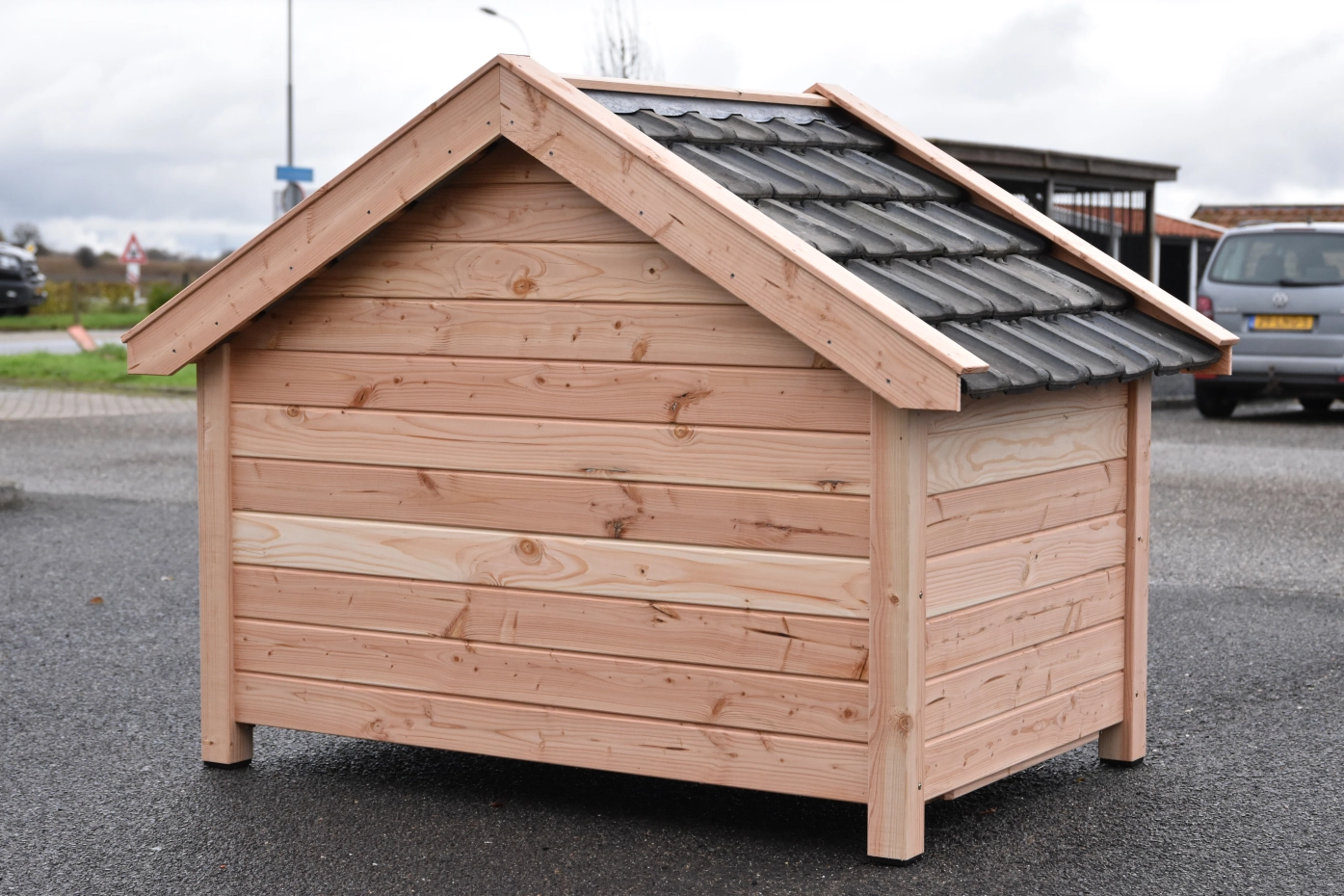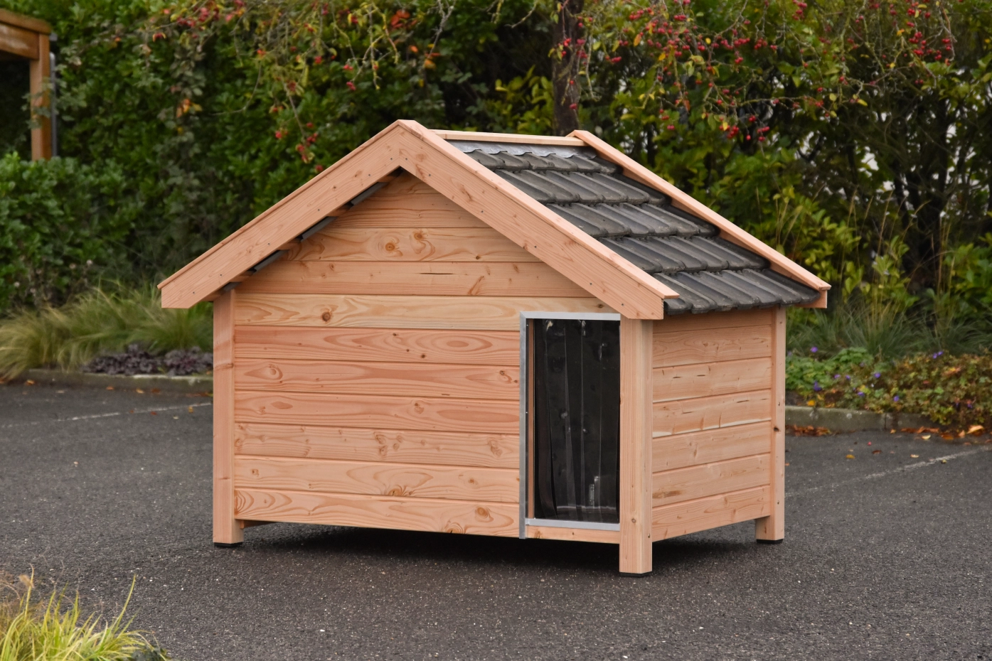 La niche pour chien Turbo Douglas est fabriquée en bois de douglas durable et équipée de poteaux noirs. Elle dispose d’un pare-courant rotatif et d’une trappe latérale, assurant une bonne ventilation et un nettoyage facile. Ce modèle convient parfaitement aux grandes races de chiens comme le Bouvier Bernois, le Dogue Allemand et le Boerboel.