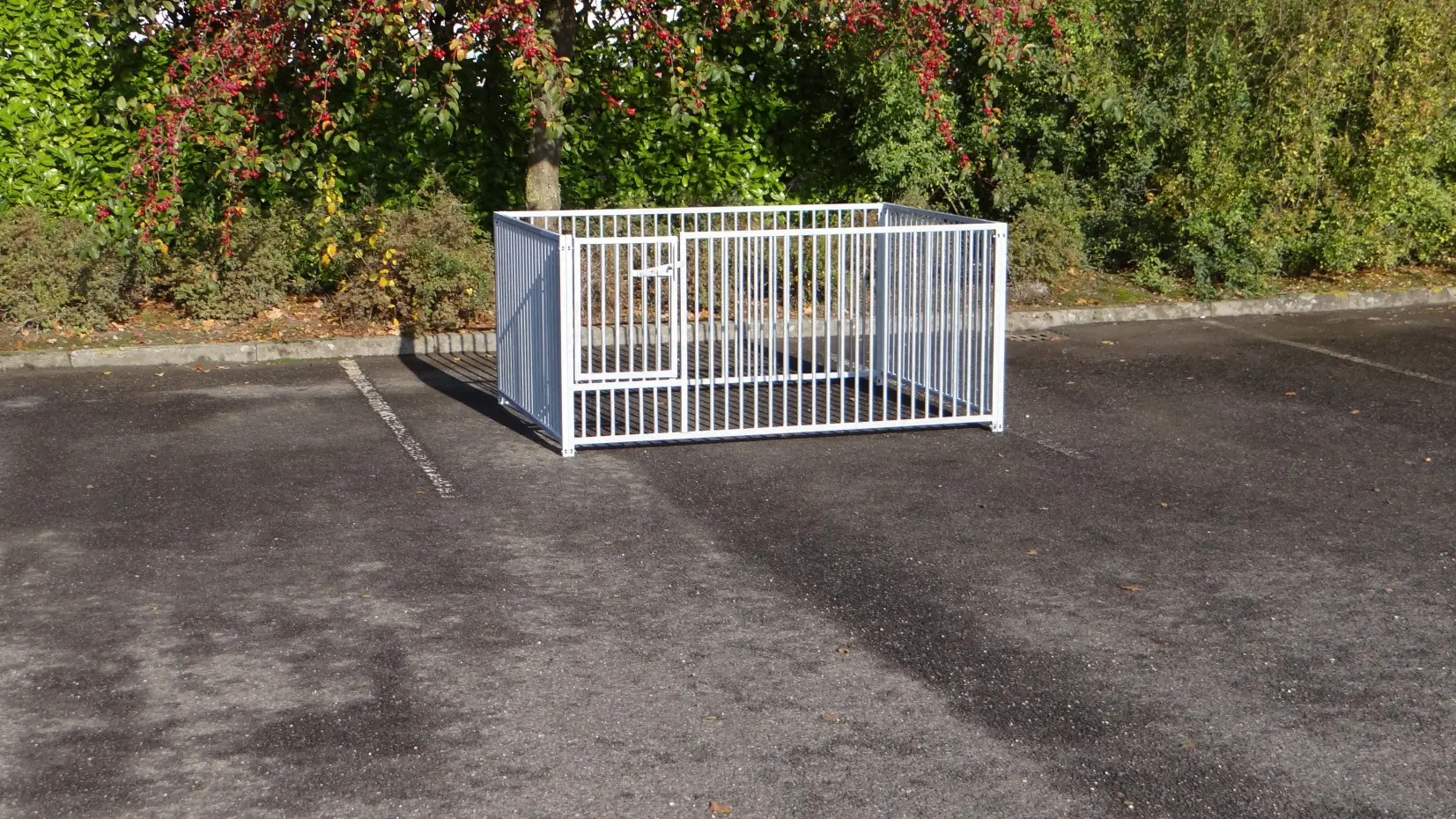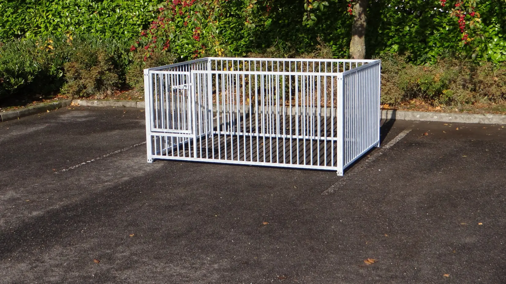 - La porte du chenil est standard sur le côté gauche, s'ouvre vers l'intérieur et peut être cadenassée