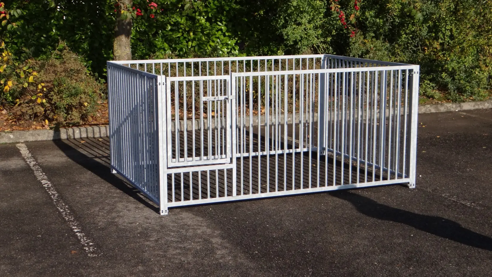 L'enclos pour chiot galvanisée de 2x1,5m est un bel espace extérieur! L'enclos consiste en 2 panneaux de 1,5m et 2 panneaux de 2m.