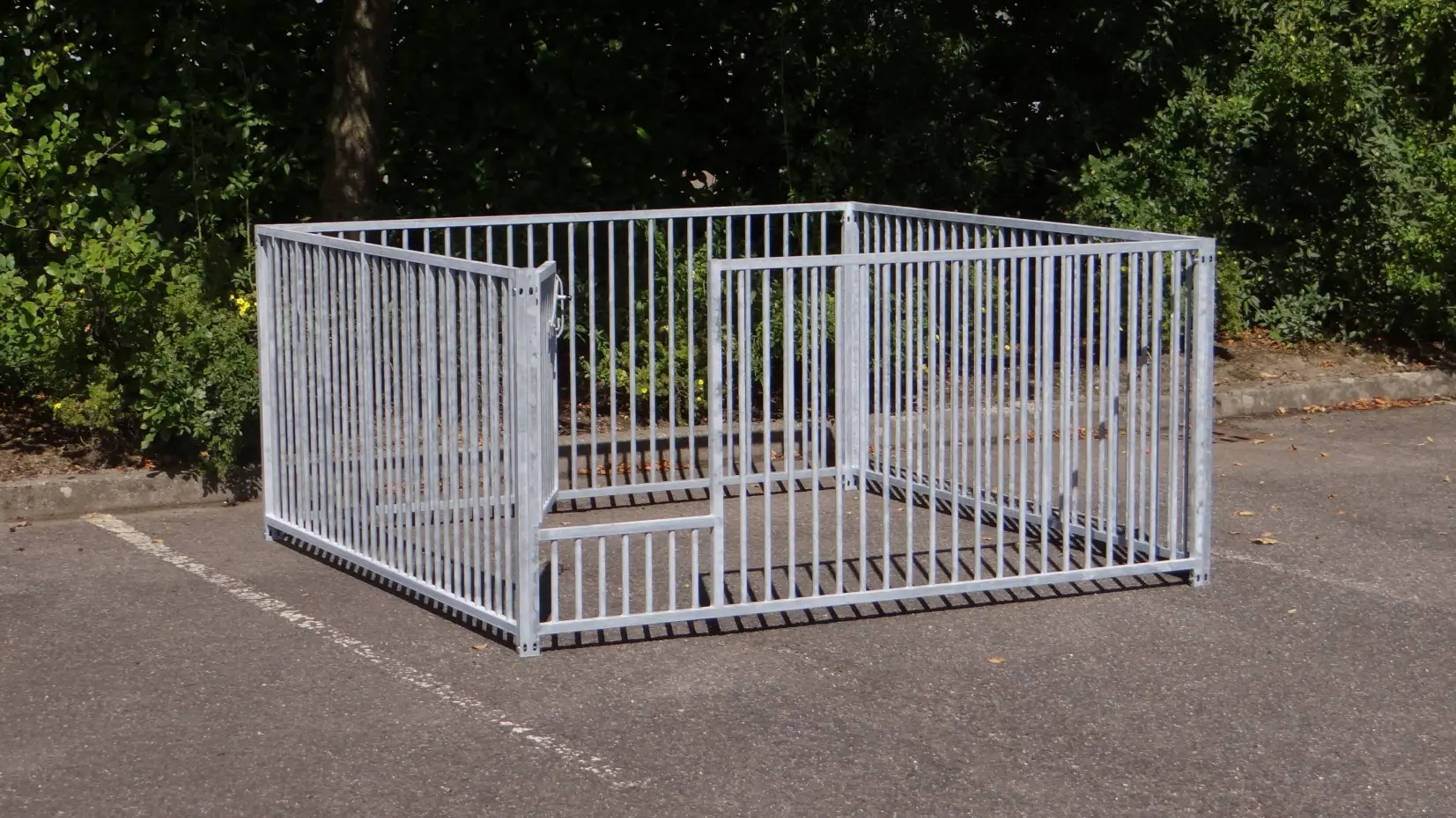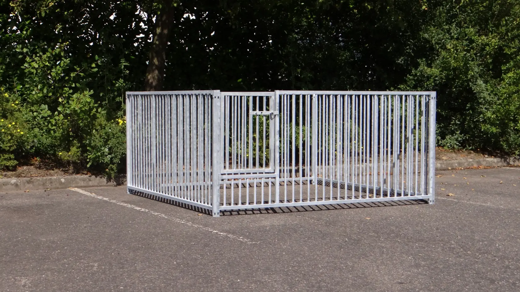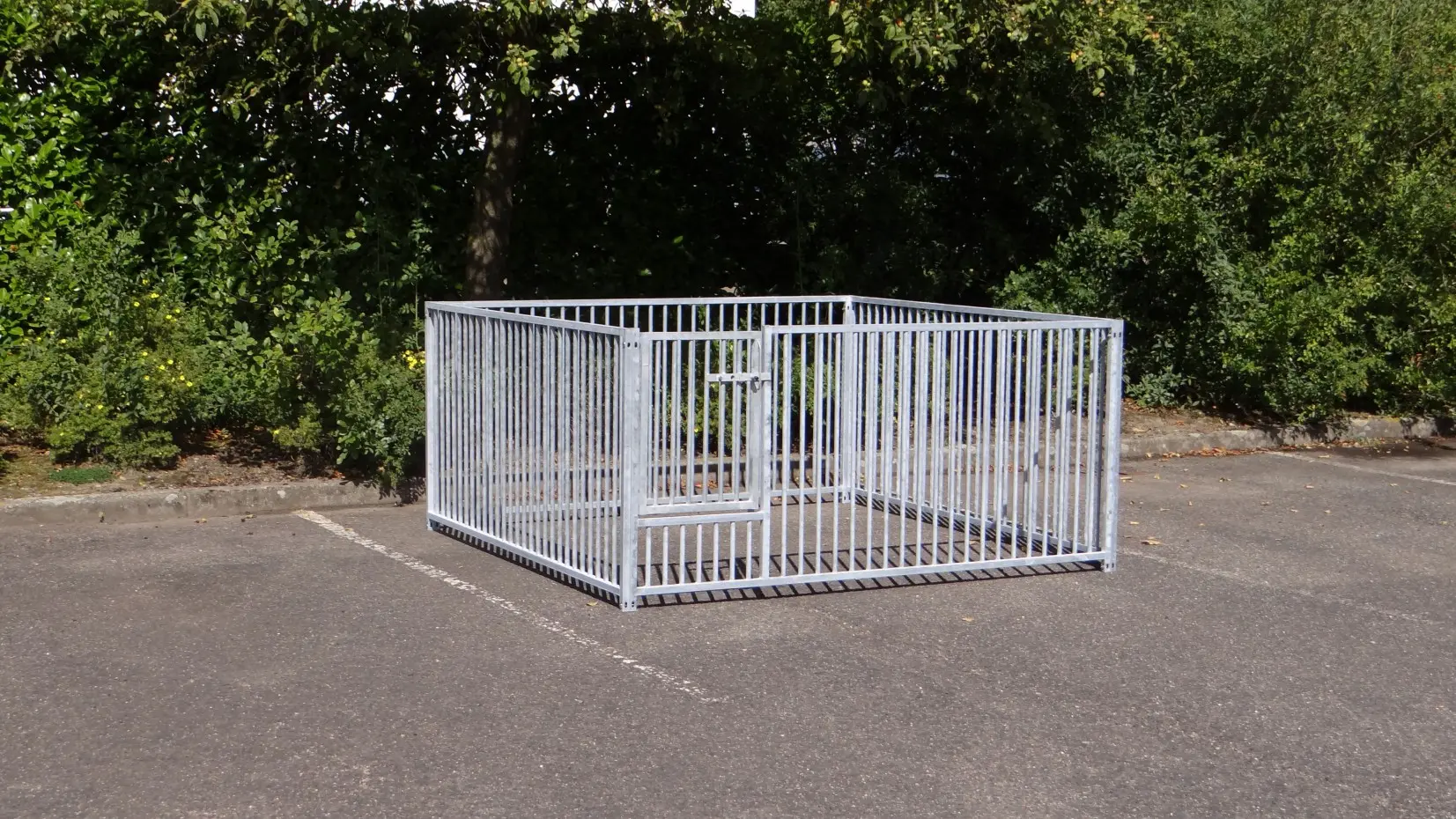 - La porte du chenil est standard sur le côté gauche, s'ouvre vers l'intérieur et peut être cadenassée