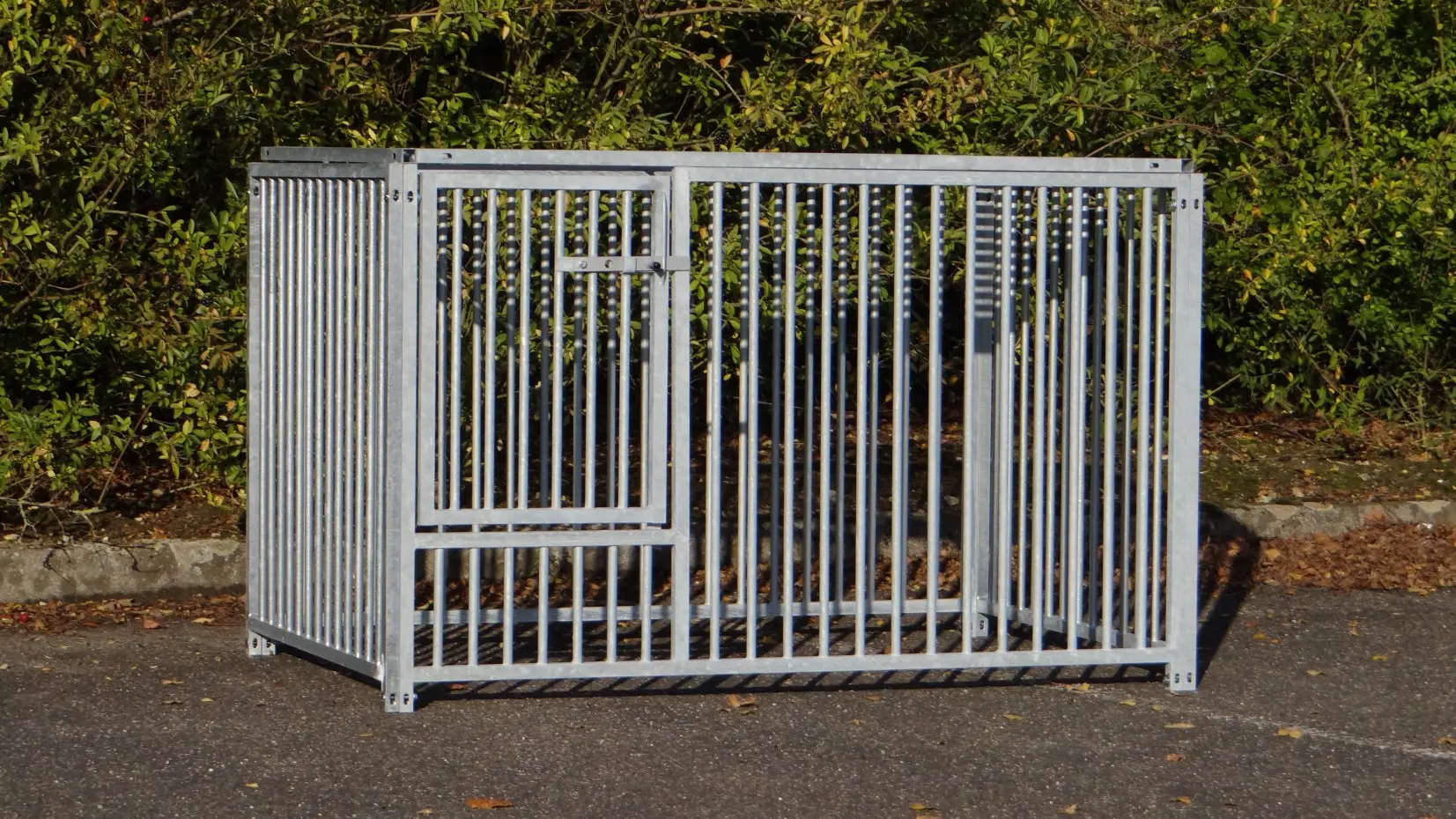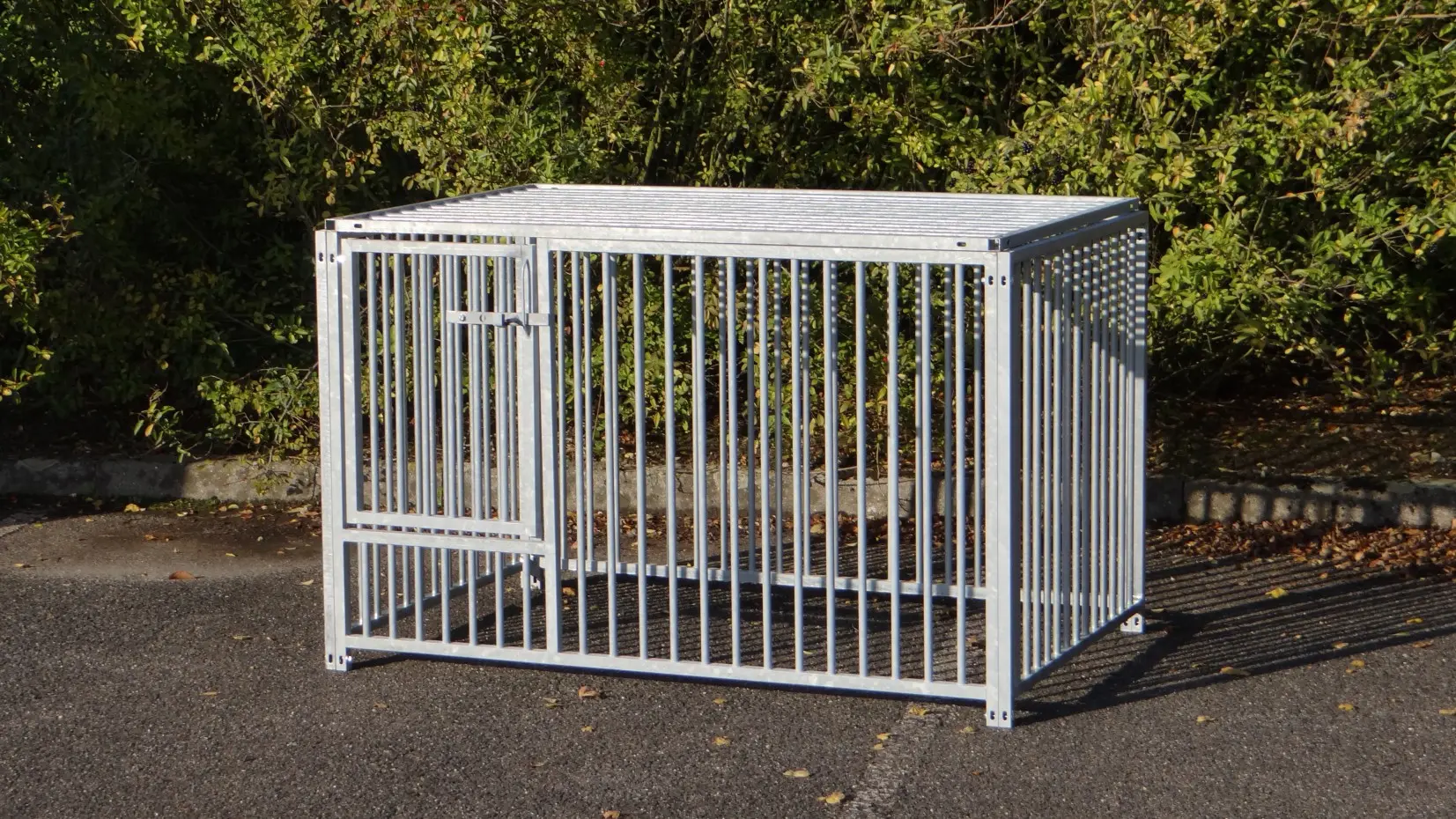 - La porte du chenil est standard sur le côté gauche, s'ouvre vers l'intérieur et peut être cadenassée