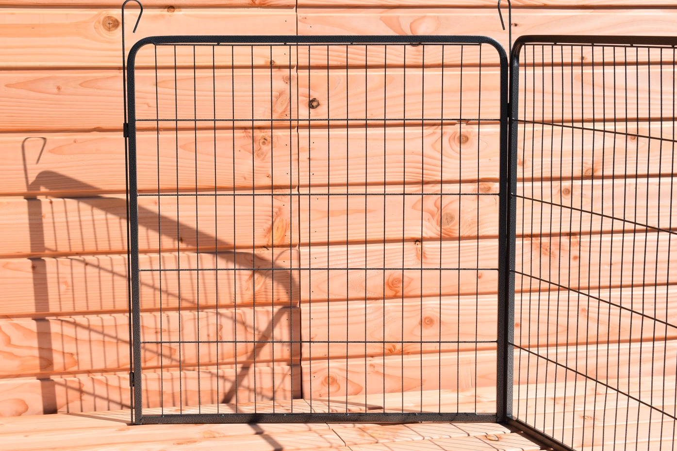 Voulez vous étenduer l'enclos Octa? C'est possible! Le panneau est livré avec 1 broche de connexxion. Le panneau a les dimensions de 79x100cm.