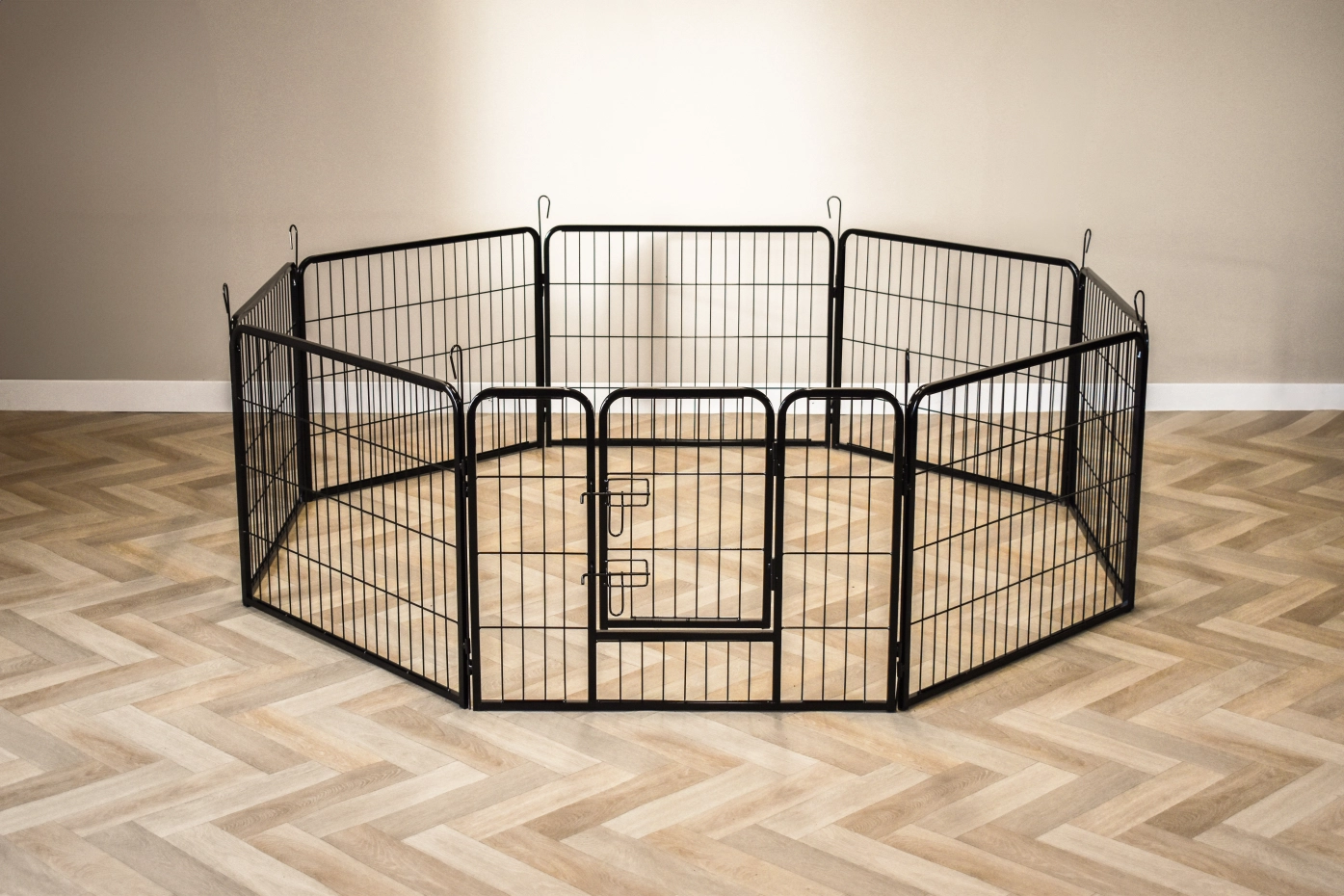Le parc enclos pour chiots Octa consiste en 8 panneaux et est fabriquée en acier revêtu de poudre. L'hauteur du parc est 60cm. L'enclos peut être (dès)assembler facilement.