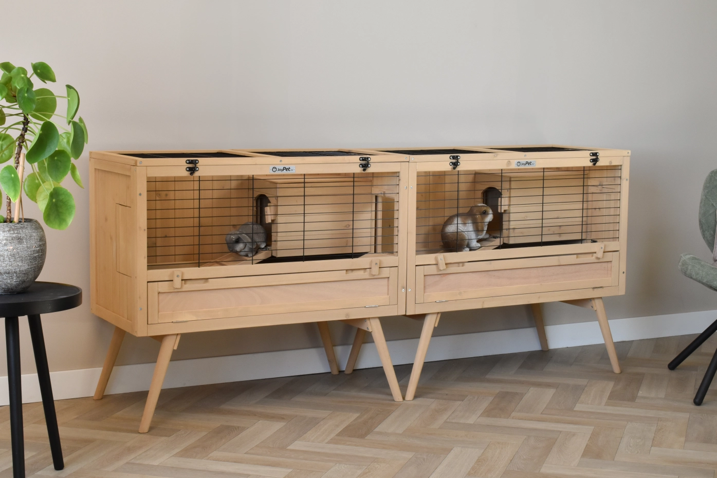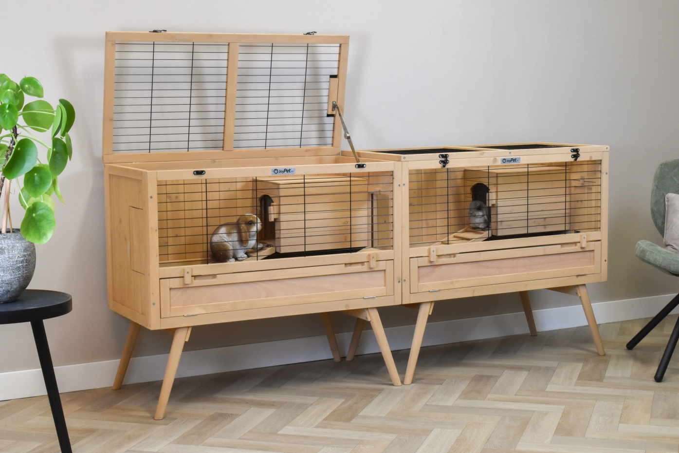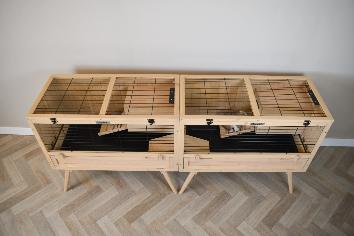 Ce clapier d'intérieur rétro se compose de deux clapier distincts qui peuvent être facilement reliés. Ainsi, vous pouvez créer en un rien de temps un clapier plus spacieux pour vos cochons d'Inde ou petits lapins. Un choix pratique et esthétique pour votre intérieur !