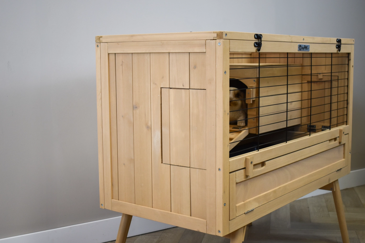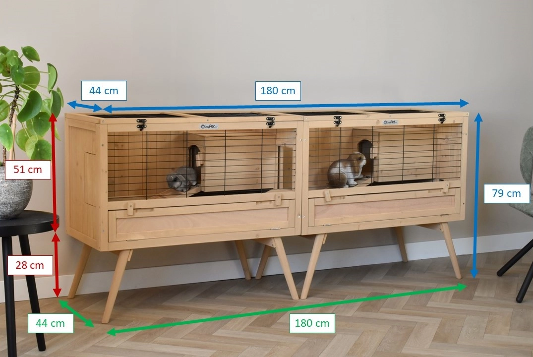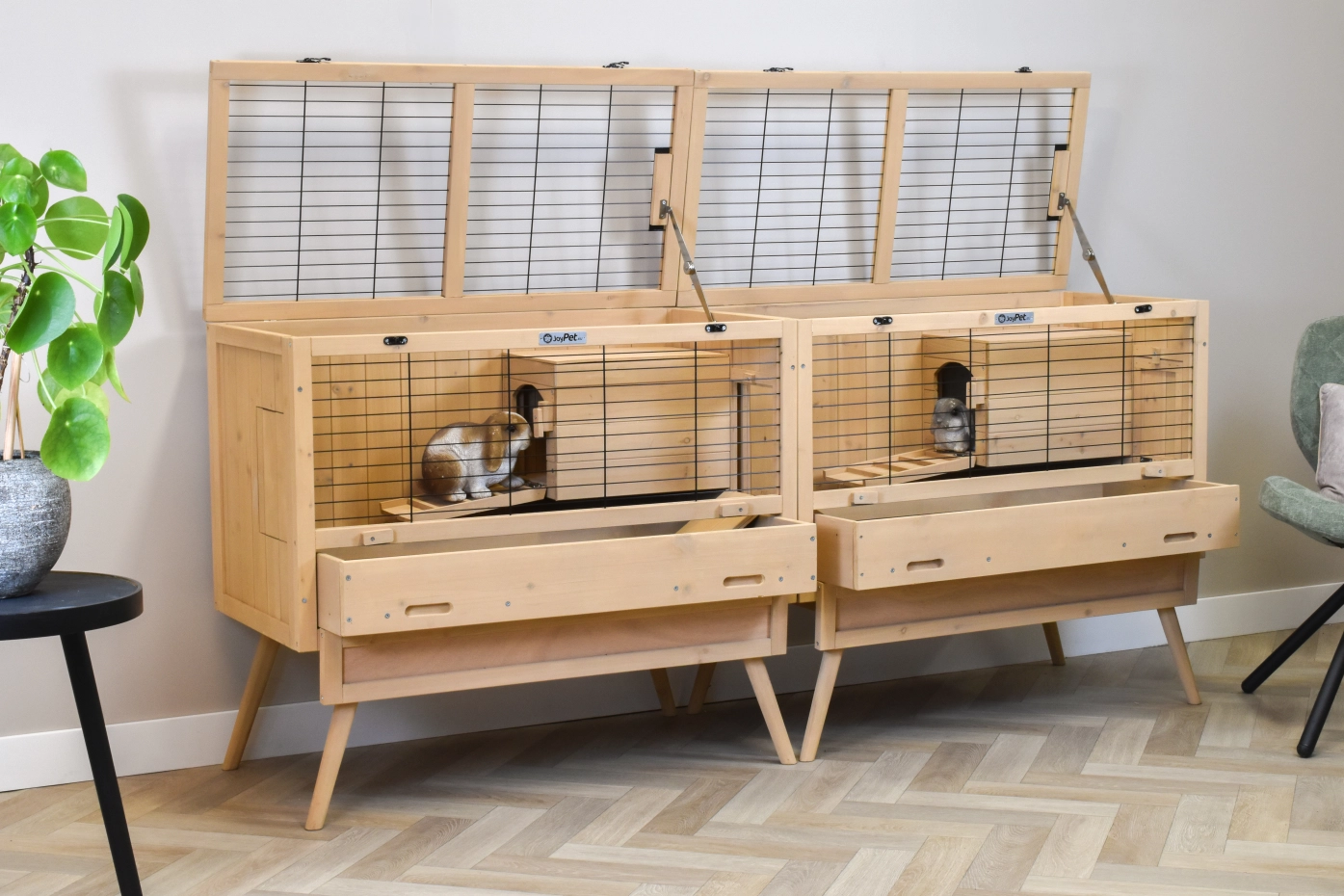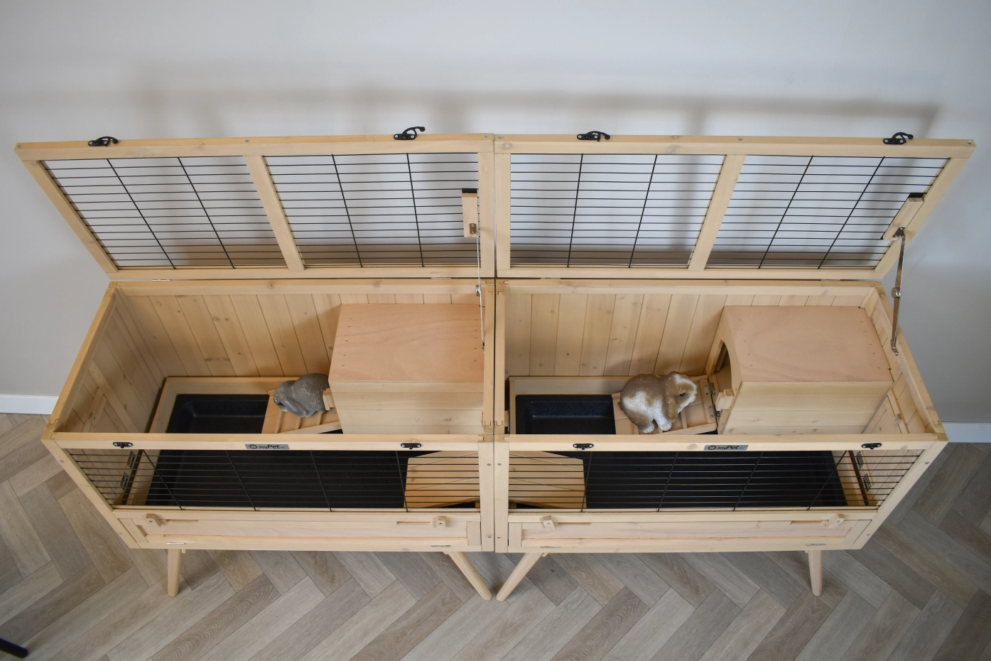 Ce clapier d'intérieur rétro se compose de deux clapier distincts qui peuvent être facilement reliés. Ainsi, vous pouvez créer en un rien de temps un clapier plus spacieux pour vos cochons d'Inde ou petits lapins. Un choix pratique et esthétique pour votre intérieur !