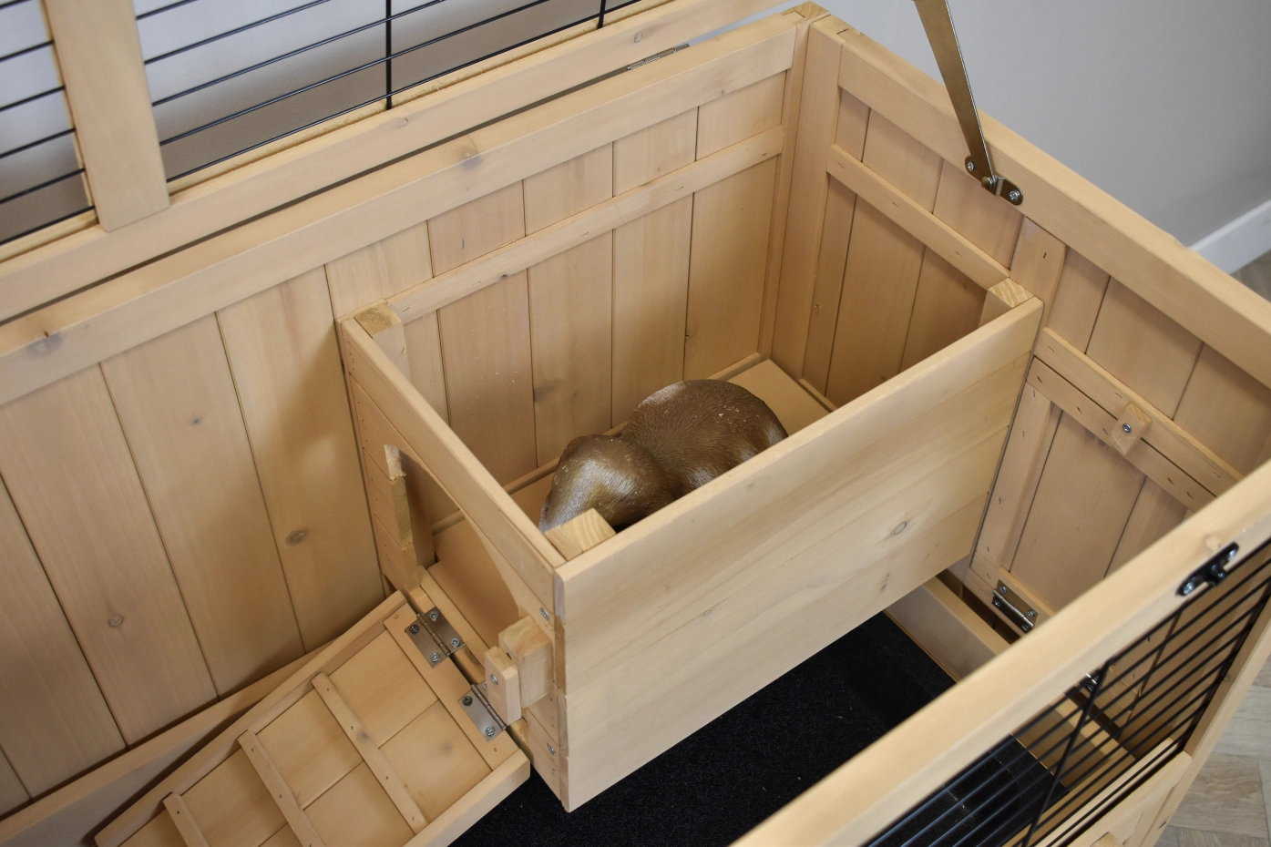 - Nous recommandons d’ entraîner son lapin à la propreté, car l'urine peut s'écouler sur le sol par les coutures du clapier.