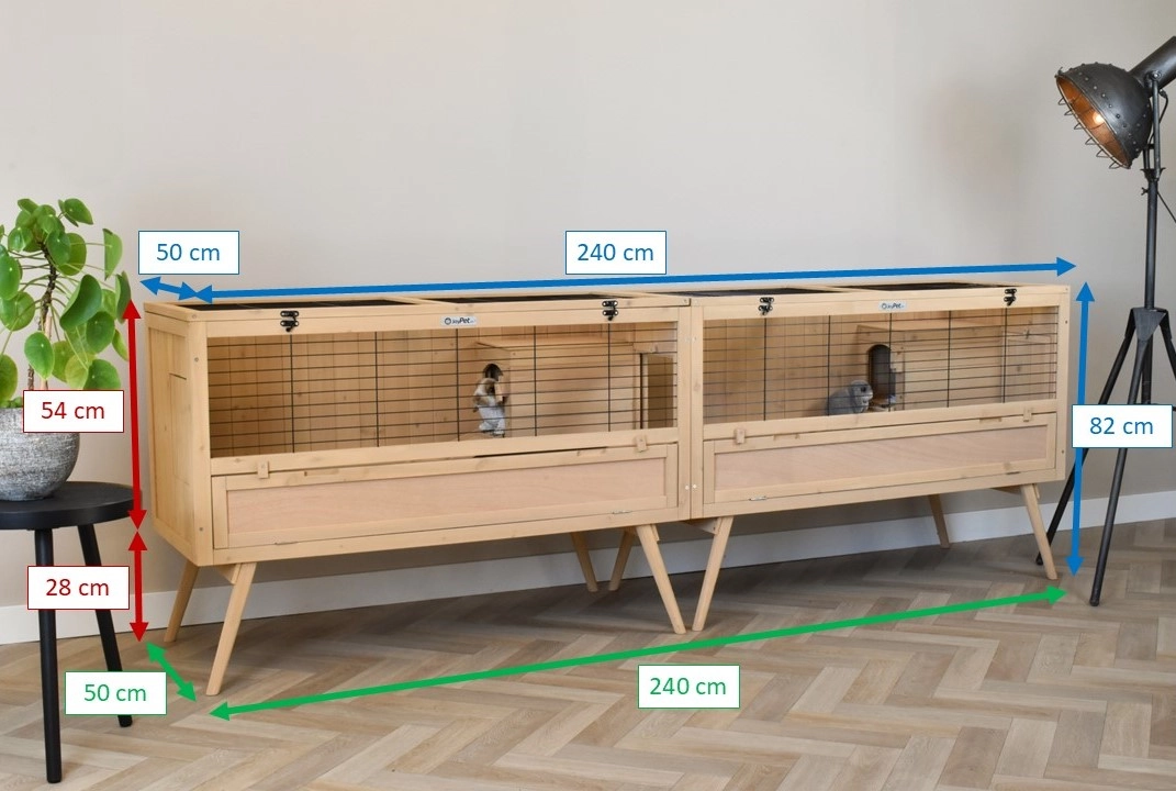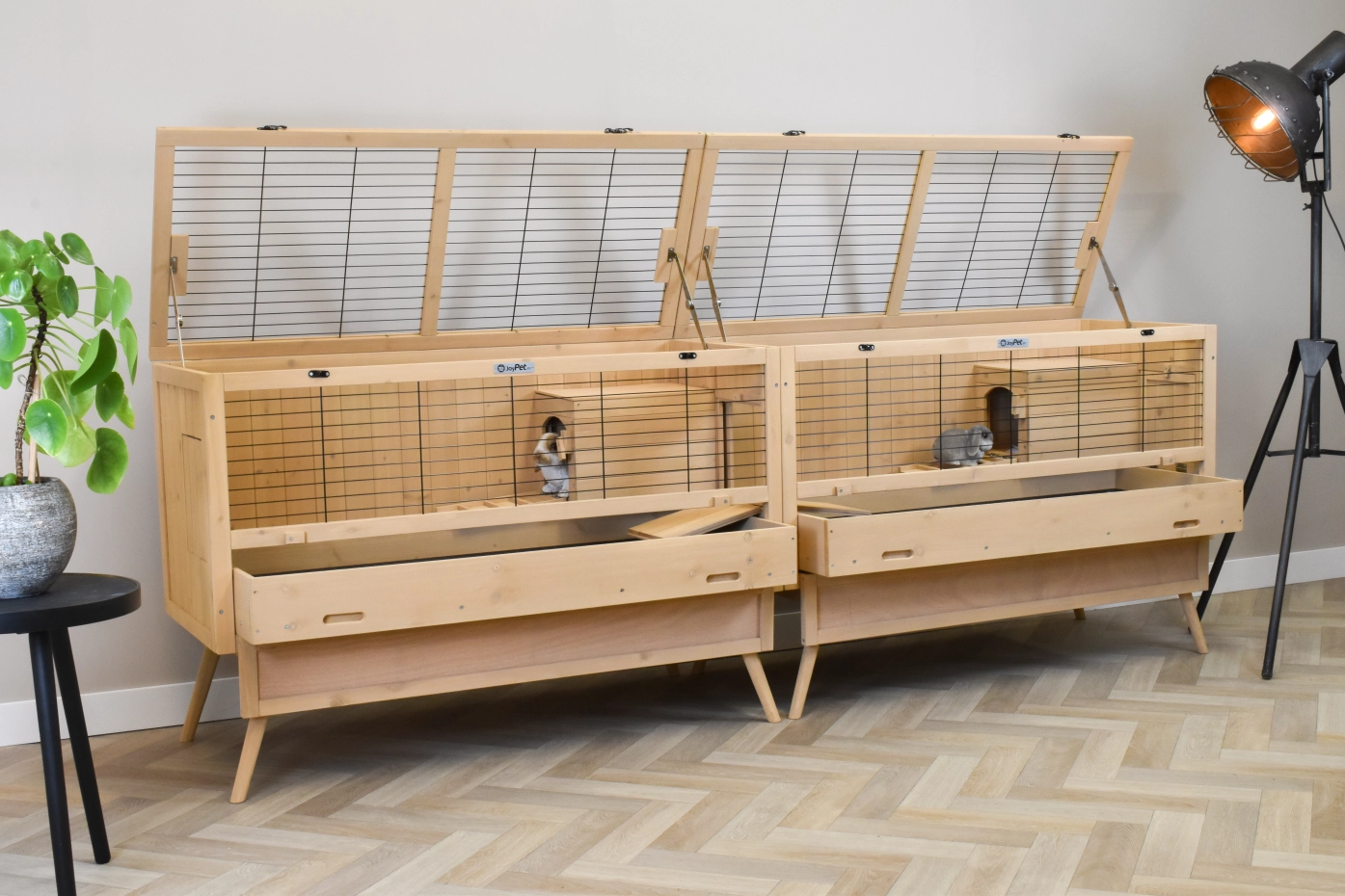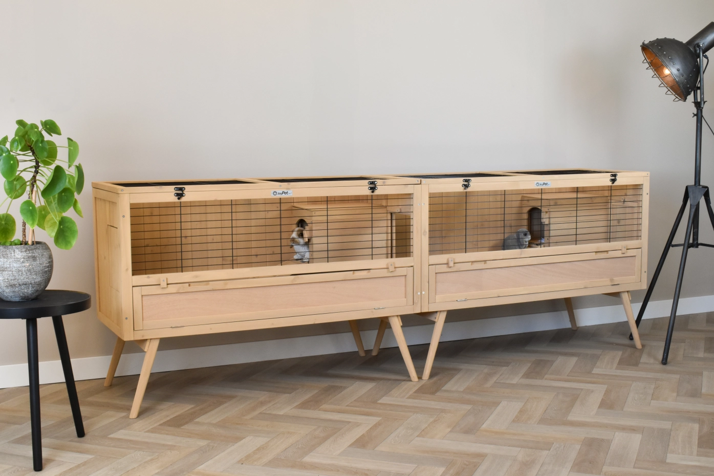 Ce clapier d'intérieur rétro se compose de deux clapiers distincts qui peuvent être facilement reliés. Ainsi, vous pouvez créer en un rien de temps un clapier plus spacieux pour vos cochons d'Inde ou petits lapins. Le clapier est doté de deux espaces de couchage, idéaux pour un confort et un repos supplémentaires. Un choix pratique et esthétique pour votre intérieur !