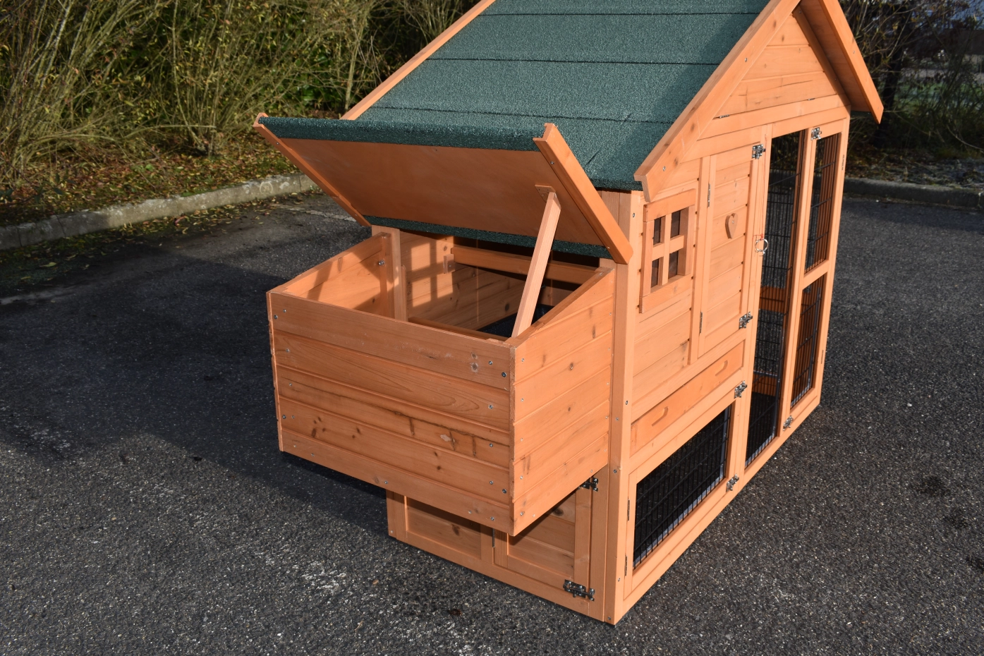 - Ce clapier est équipé d'un toit bitume