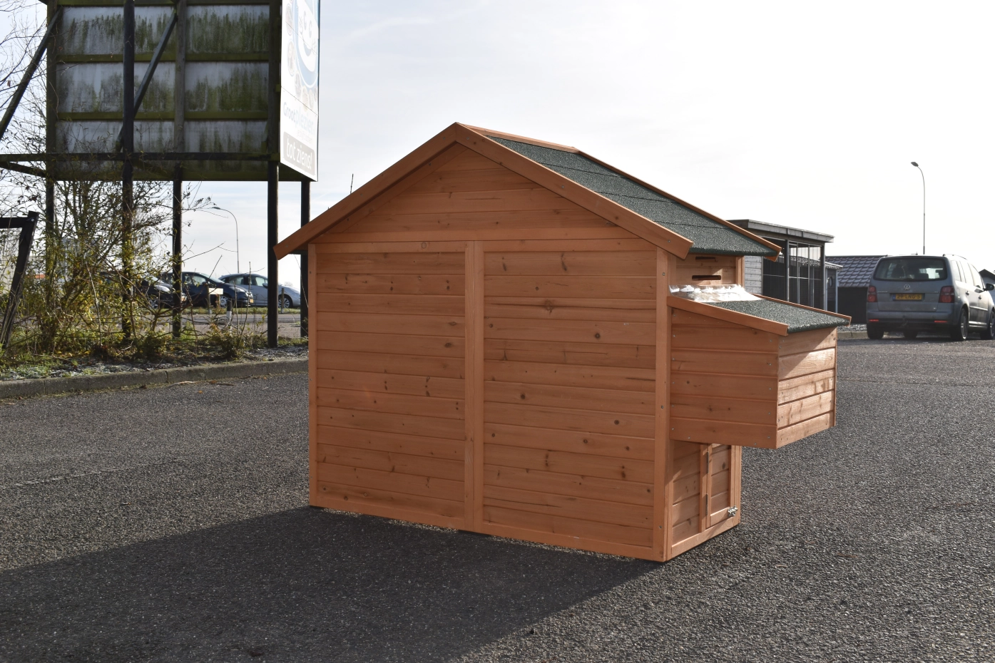 Le bois utilisé pour le loft est un produit naturel unique qu'a été produit dans le pays d'origine, après une sélection rigoureuse, dans une manière traditionelle. C'est caractéristique et unique à tous égards. Ce produit en bois a été un traitement manuel. Aucune pièce de bois ne possède la même forme, la même structure ou la même couleur, de sorte que les nuances de couleur sont inévitables, même dans un morceau de bois. Les fissures dues au vent, les craquelures, les imperfections et la présence de gros et de petits noeuds témoignent de leur origine et de leurs années de croissance. Les bosses sont généralement mises à jour manuellement avec du bois. Grâce à leur utilisation et à l’influence de la lumière, les nouveaux maisons pour animaux auront une couleur plus chaude au fil du temps. Les différences de couleur au modèle d'exposition sont donc possibles. L'enclos pour animaux est munie d'un fini antitache dans les couleurs comme sur la photo. Vous devez encore décaper le bois pour éviter les moisissures et la pourriture. Vous pouvez facilement commander des taches directement.