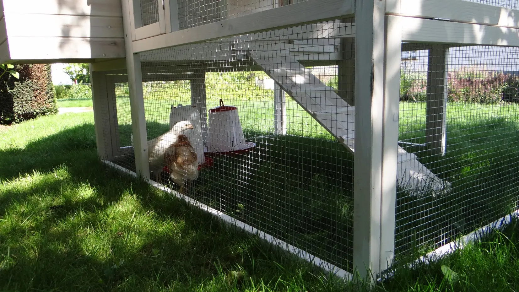 - Si ce n'est pas dans un endroit abrité, nous vous conseillons d'ancrer le clapier / poulailler