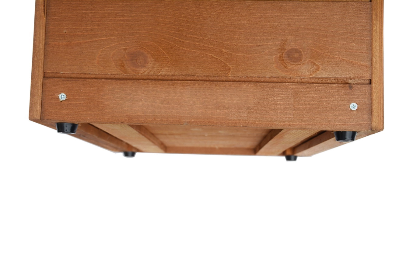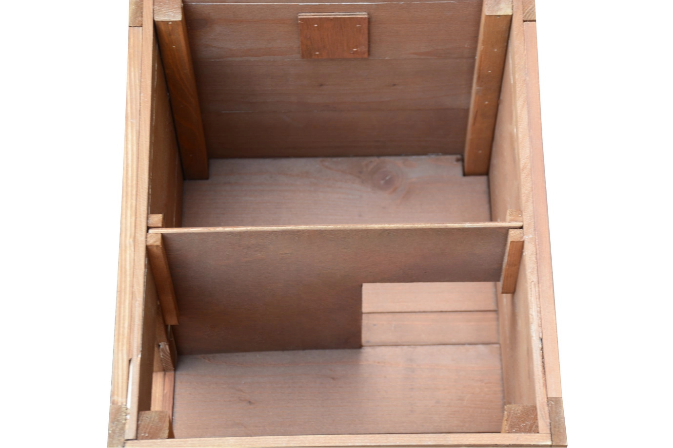 Cet enclos pour animaux est fabriqué à la main en bois de pin. Le bois de pin est un bois tendre particulièrement beau, apprécié depuis longtemps dans notre gamme des enclos d'animaux. En particulier, le grain du bois, le dessin à la flamme et les variations de couleur donnent à l'enclos de l'animal un aspect solide et chaleureux.