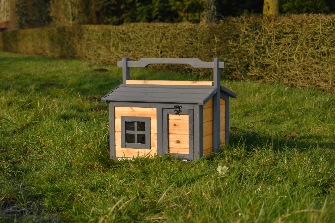 Cet enclos pour animaux est fabriqué à la main en bois de pin. Le bois de pin est un bois tendre particulièrement beau, apprécié depuis longtemps dans notre gamme des enclos d'animaux. En particulier, le grain du bois, le dessin à la flamme et les variations de couleur donnent à l'enclos de l'animal un aspect solide et chaleureux.