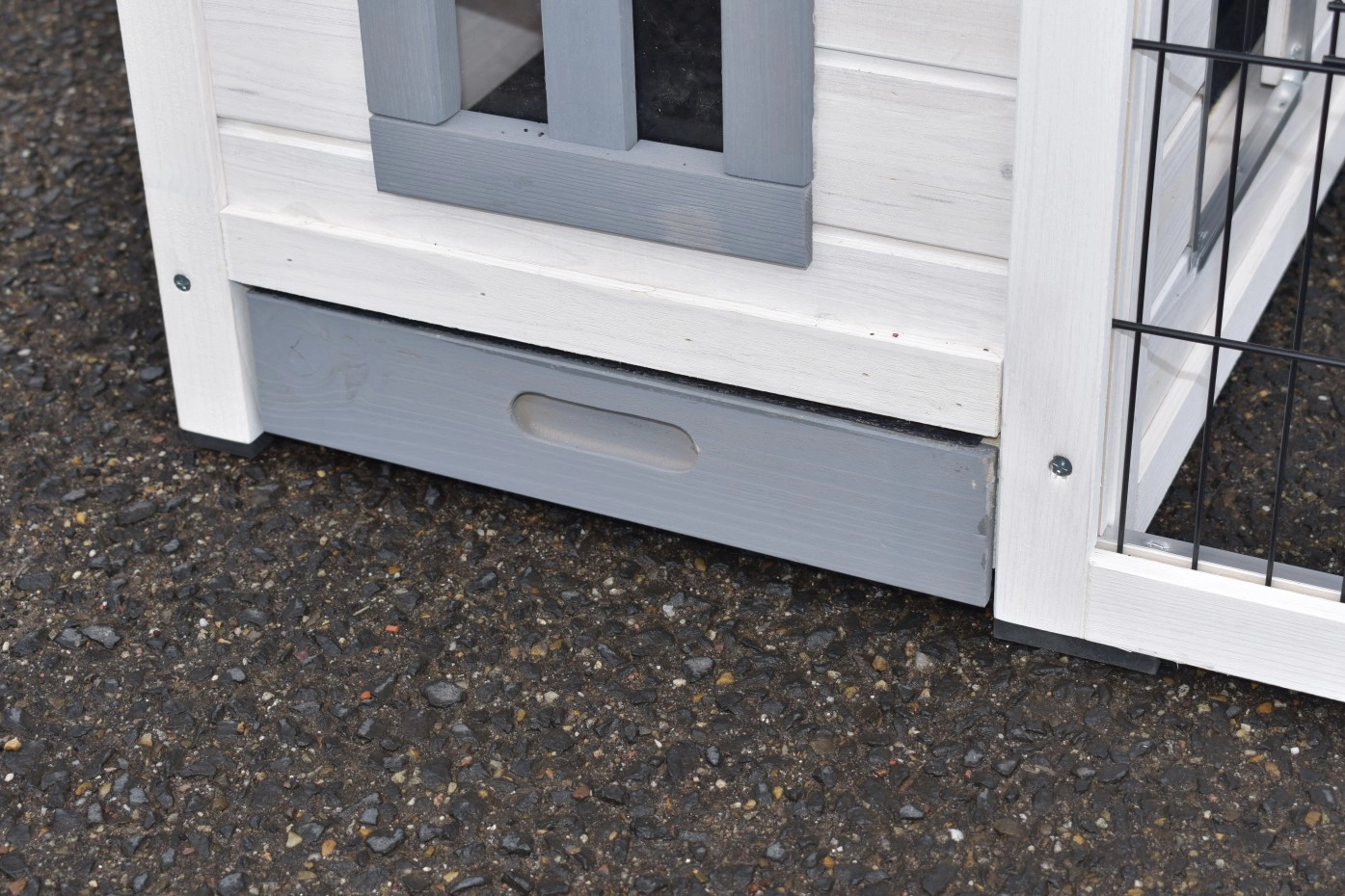 La clapier pour lapin Pretty Home avec tiroir extractible convient également aux cochons d'Inde. Cette cage ludique avec un espace nuit et une course est équipée de bordures anti-rongeurs, de pieds en caoutchouc, d'un toit à charnière et d'un tiroir extractible. Veuillez noter : Ceci n'est pas une habitation permanente pour lapin ; un espace d'exercice suffisant est requis