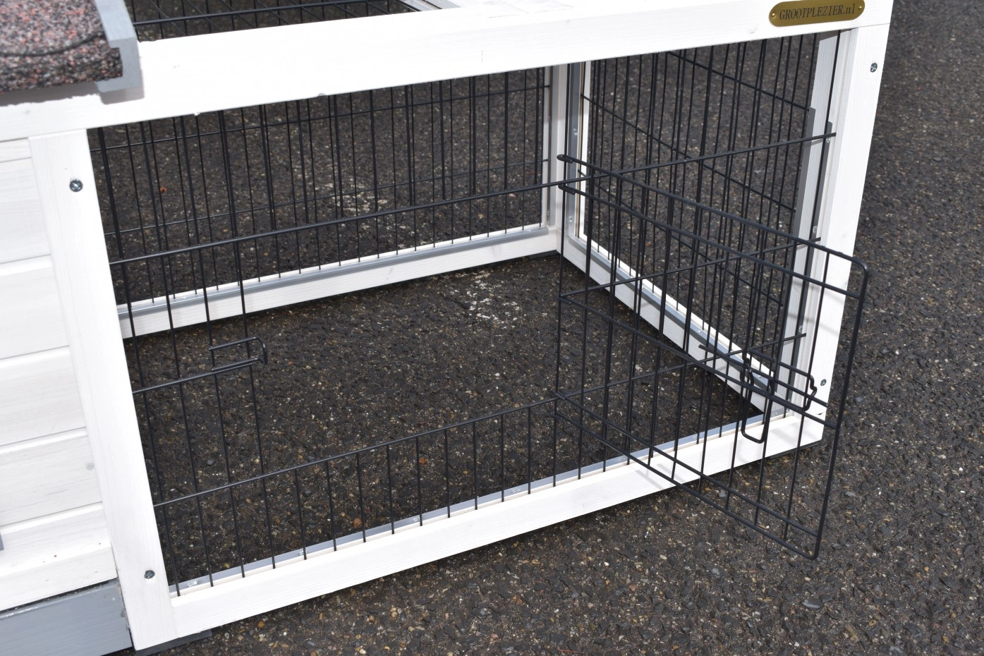 Il est conseillé de traiter périodiquement les charnières et les serrures avec un spray en silicone ou un spray pour serrures pour éviter la rouille et la corrosion. Si l'animal n'est pas dans un endroit abrité, nous vous conseillons d'ancrer l'enclos.