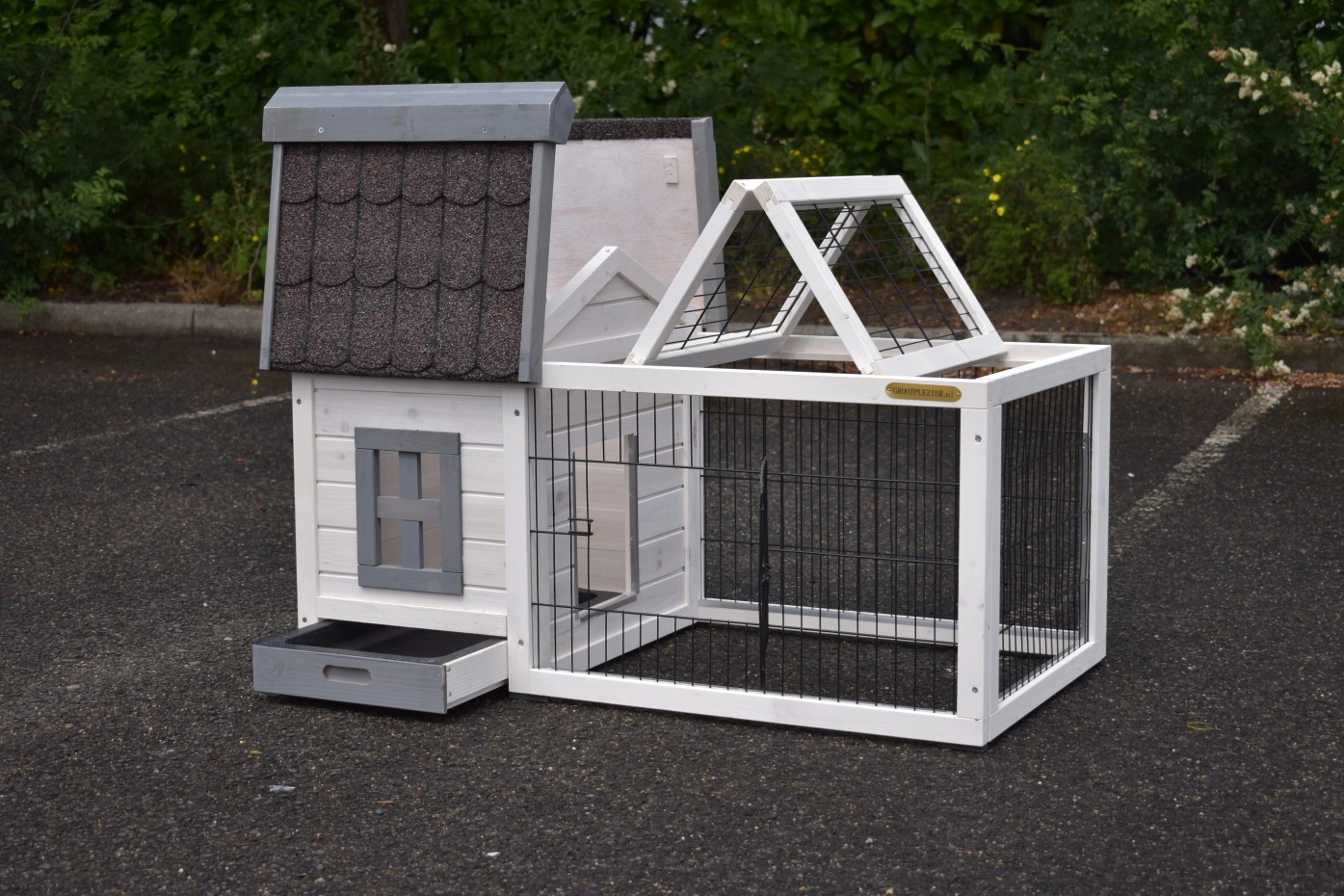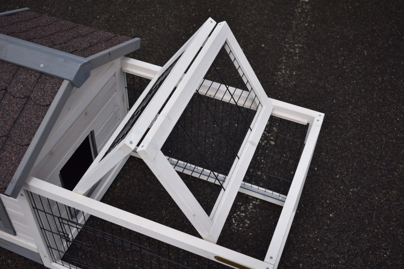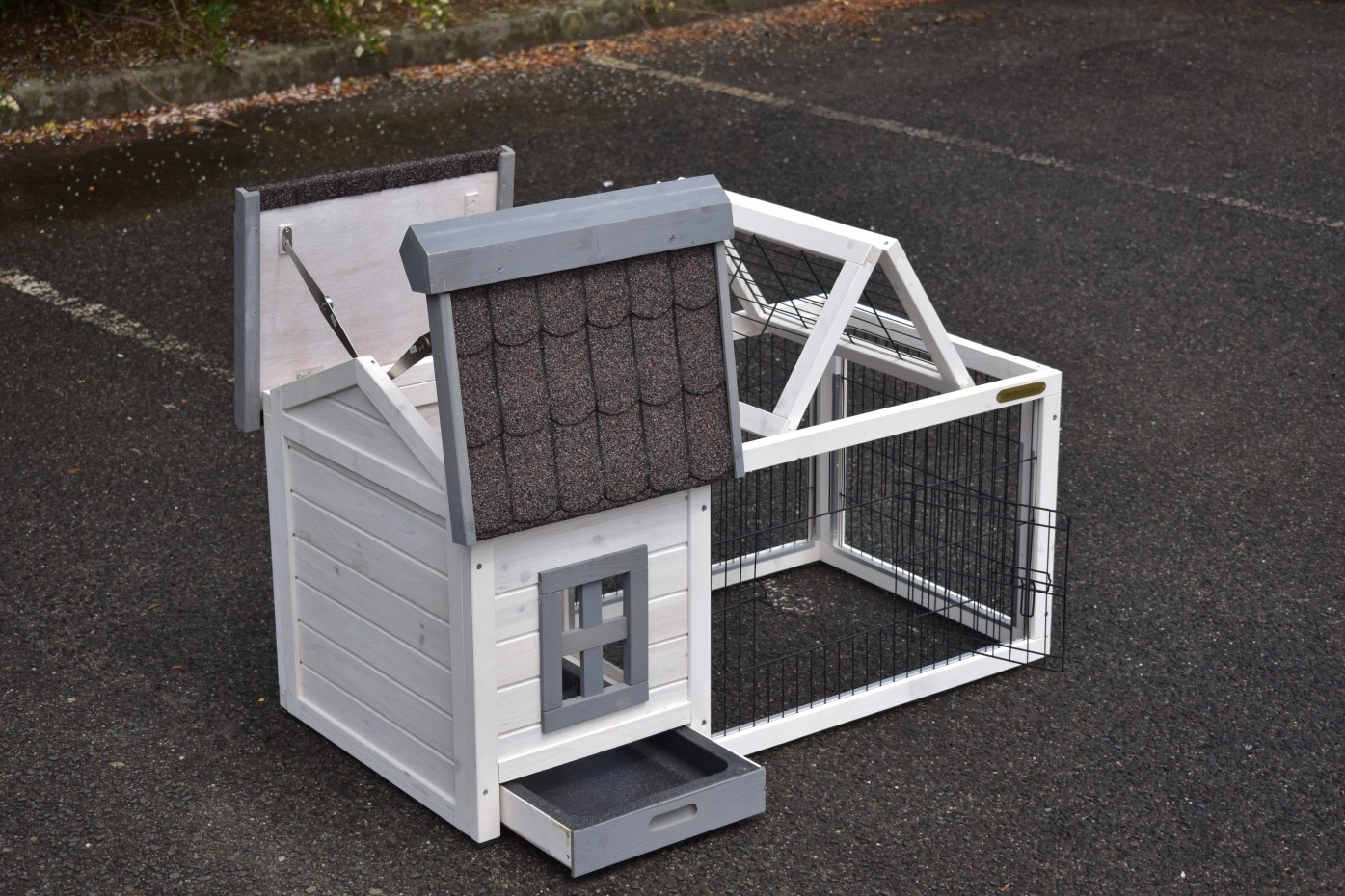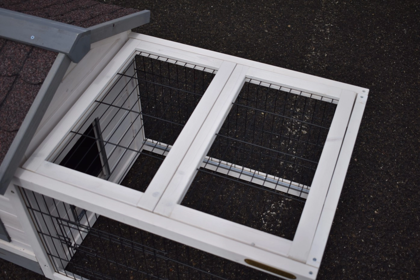 - Ce clapier est équipé d'un toit bitume