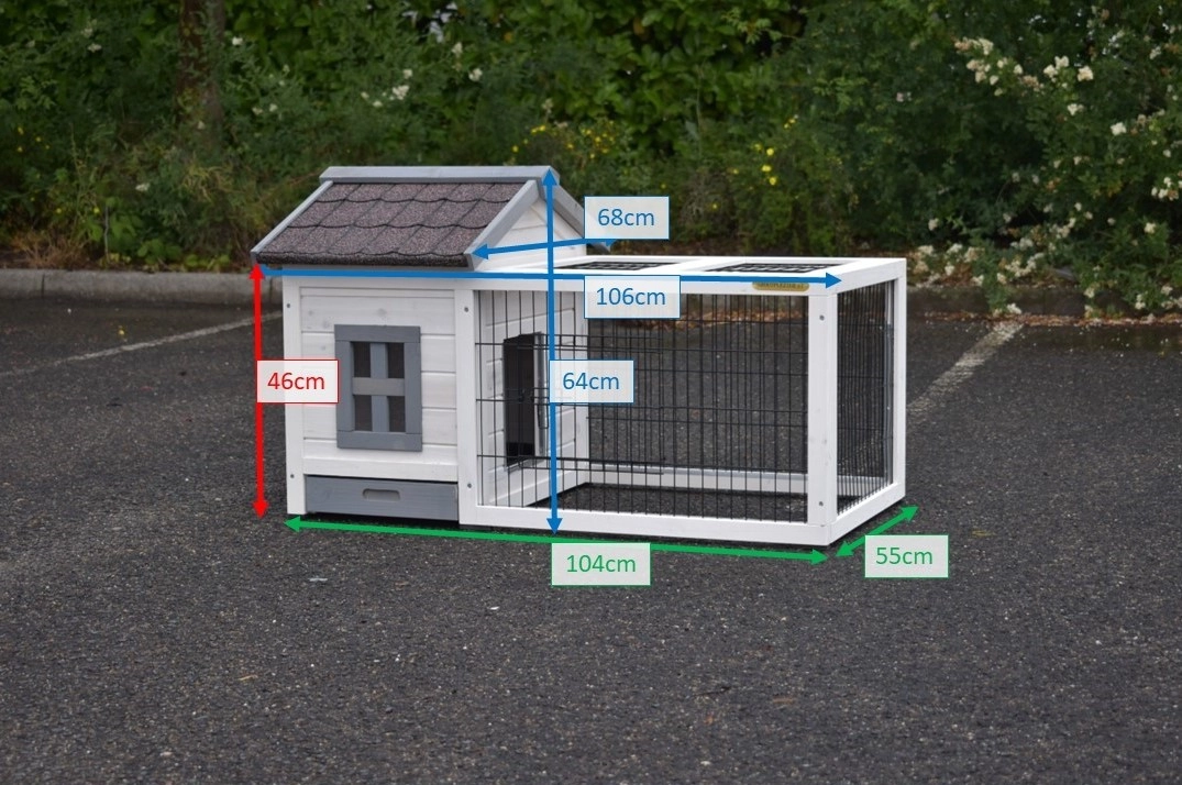 | Dimensions extérieures incluant le toit (LxPxH) | 106x68x64cm |