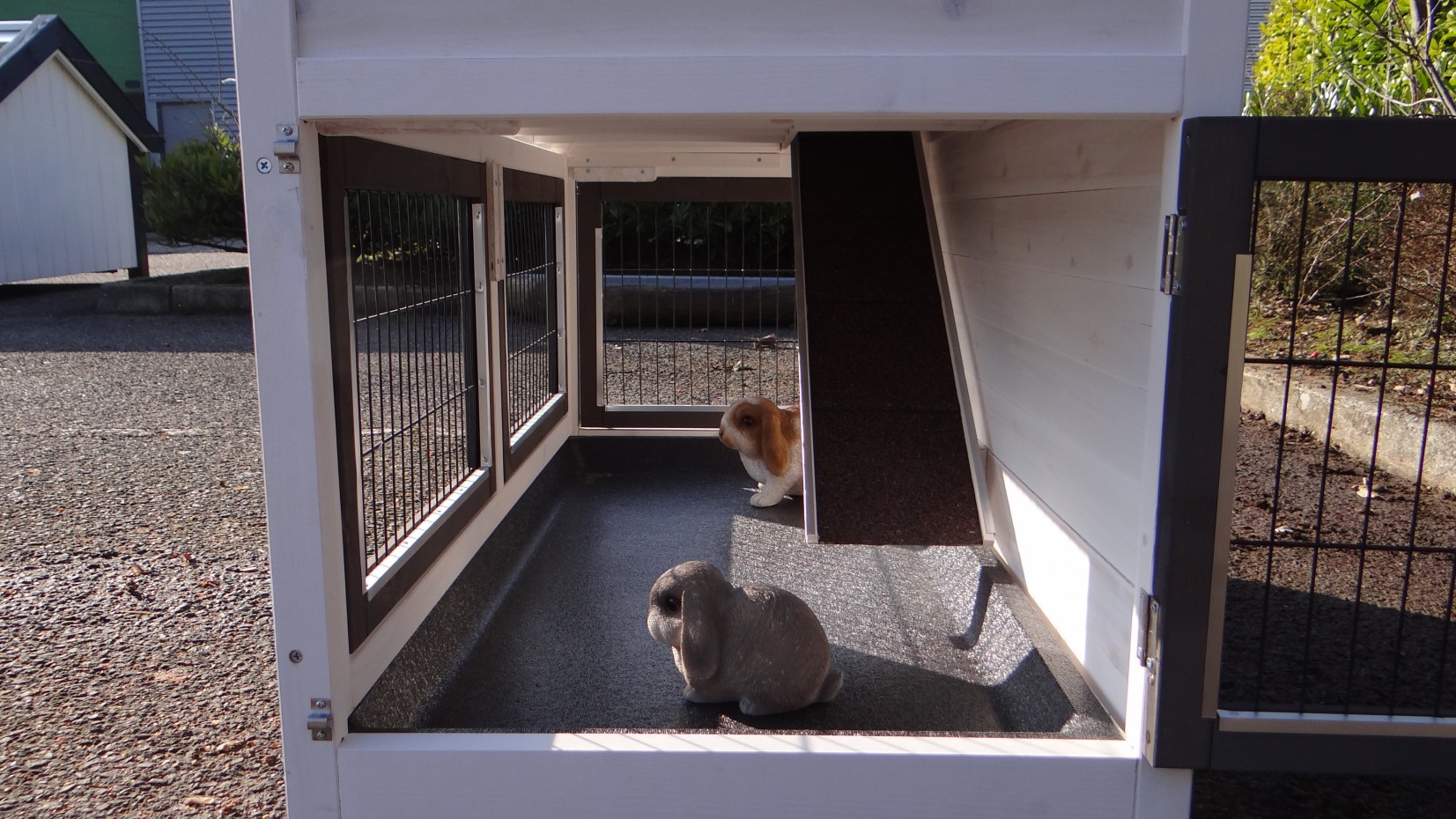 Il est conseillé de traiter périodiquement les charnières et les serrures avec un spray en silicone ou un spray pour serrures pour éviter la rouille et la corrosion. Si l'animal n'est pas dans un endroit abrité, nous vous conseillons d'ancrer l'enclos.