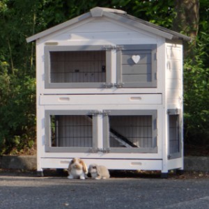 Le bois utilisé pour le loft est un produit naturel unique qu'a été produit dans le pays d'origine, après une sélection rigoureuse, dans une manière traditionelle. C'est caractéristique et unique à tous égards. Ce produit en bois a été un traitement manuel. Aucune pièce de bois ne possède la même forme, la même structure ou la même couleur, de sorte que les nuances de couleur sont inévitables, même dans un morceau de bois. Les fissures dues au vent, les craquelures, les imperfections et la présence de gros et de petits noeuds témoignent de leur origine et de leurs années de croissance. Les bosses sont généralement mises à jour manuellement avec du bois. Grâce à leur utilisation et à l’influence de la lumière, les nouveaux maisons pour animaux auront une couleur plus chaude au fil du temps. Les différences de couleur au modèle d'exposition sont donc possibles. L'enclos pour animaux est munie d'un fini antitache dans les couleurs comme sur la photo. Vous devez encore décaper le bois pour éviter les moisissures et la pourriture. Vous pouvez facilement commander des taches directement.