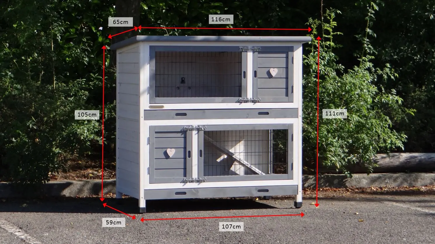| Dimensions extérieures incluant le toit (LxPxH) | 116x65x111cm |