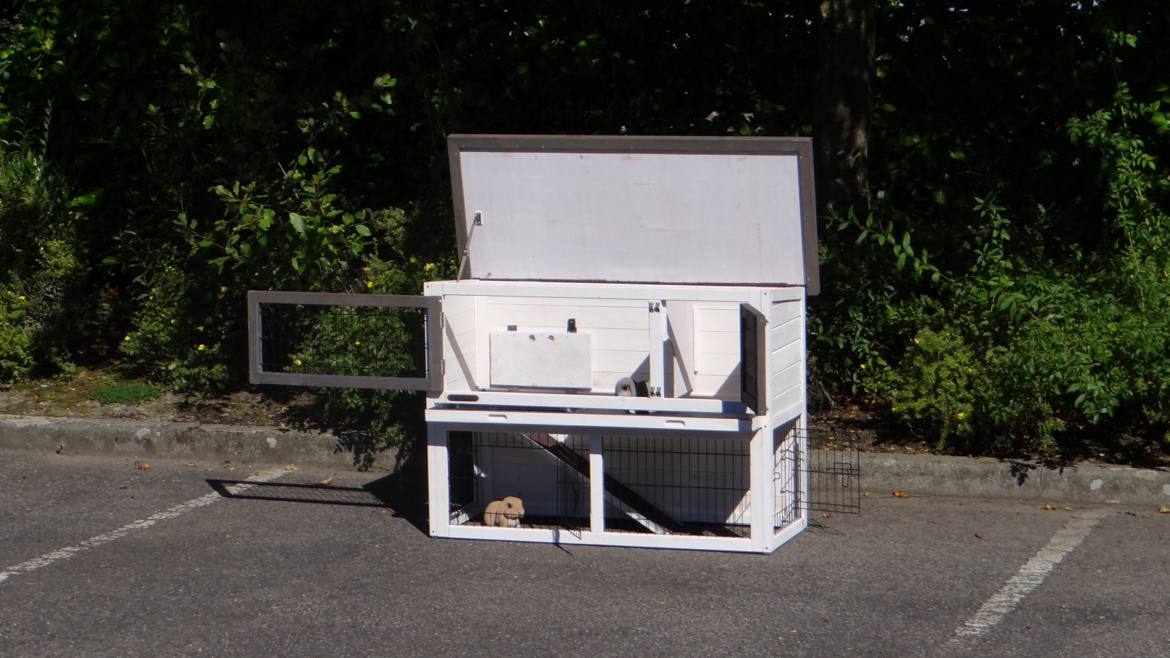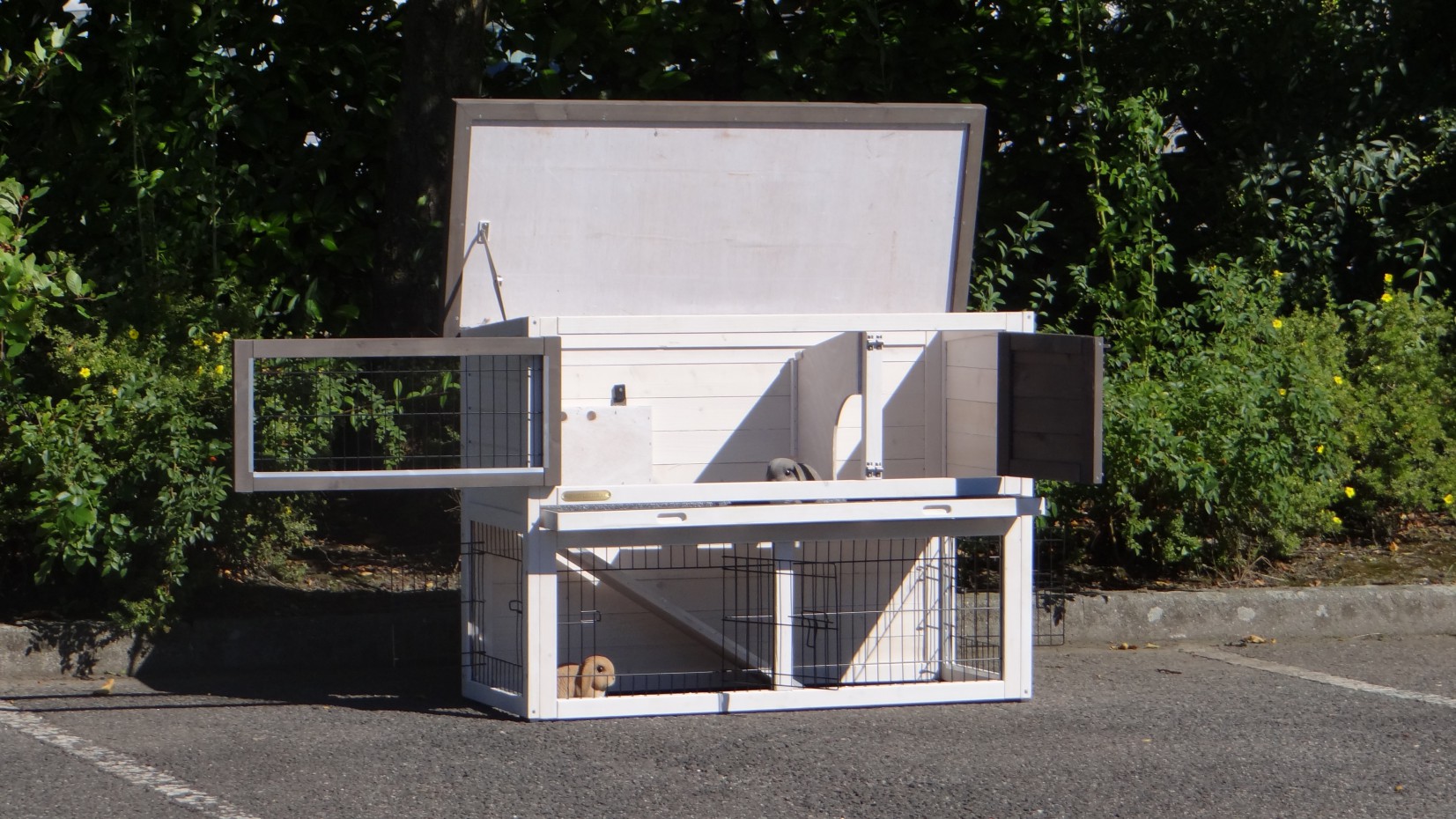 Le clapier pour lapin est pas chèr, et spacieux pour votre lapin par ses deux étages. Le clapier est équipé d'un tiroir