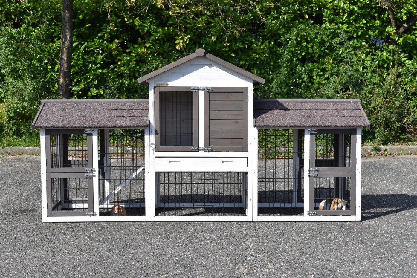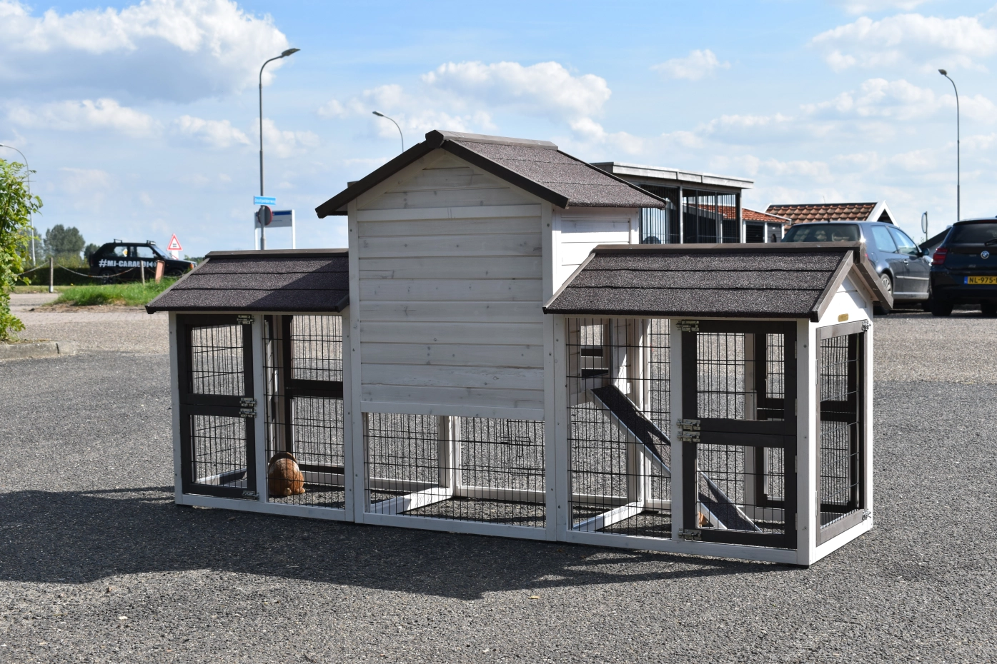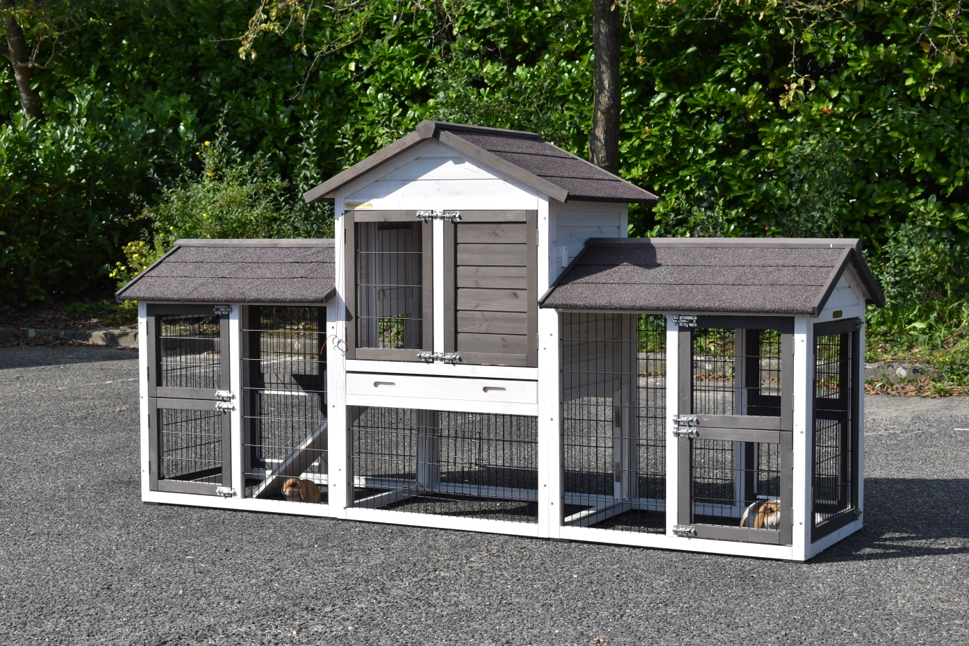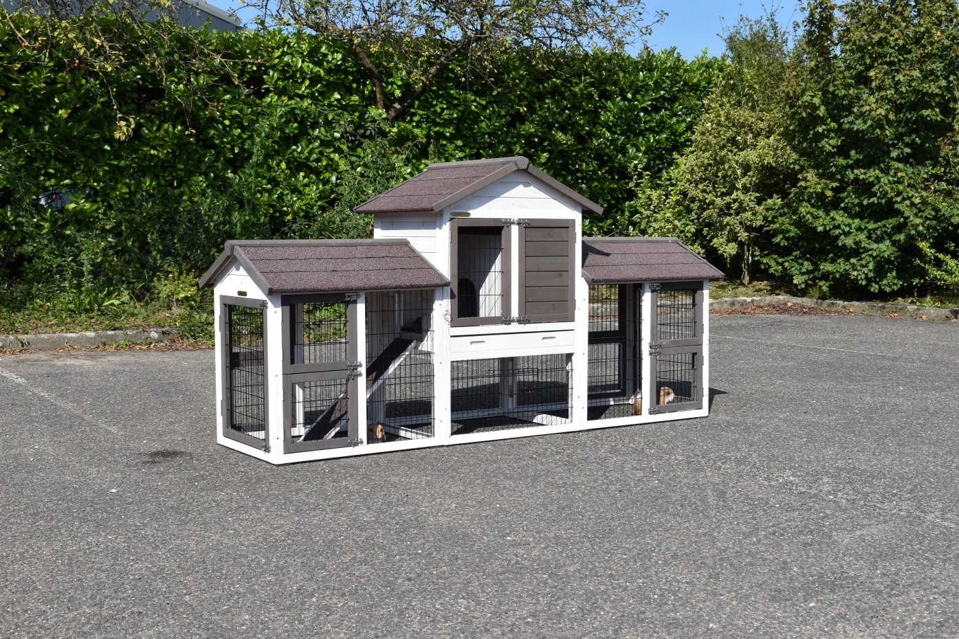 Clapier pour lapin Prestige Small avec 2 enclos est un bel espace avec grandes portes et anti-mordillage. Le clapier pour lapin pratique a une grenier de stockage au-dessus de l'abri de nuit. Le clapier a une tiroir, pour un nettoyage facile.