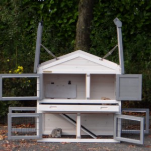 Il est conseillé de traiter périodiquement les charnières et les serrures avec un spray en silicone ou un spray pour serrures pour éviter la rouille et la corrosion. Si l'animal n'est pas dans un endroit abrité, nous vous conseillons d'ancrer l'enclos.