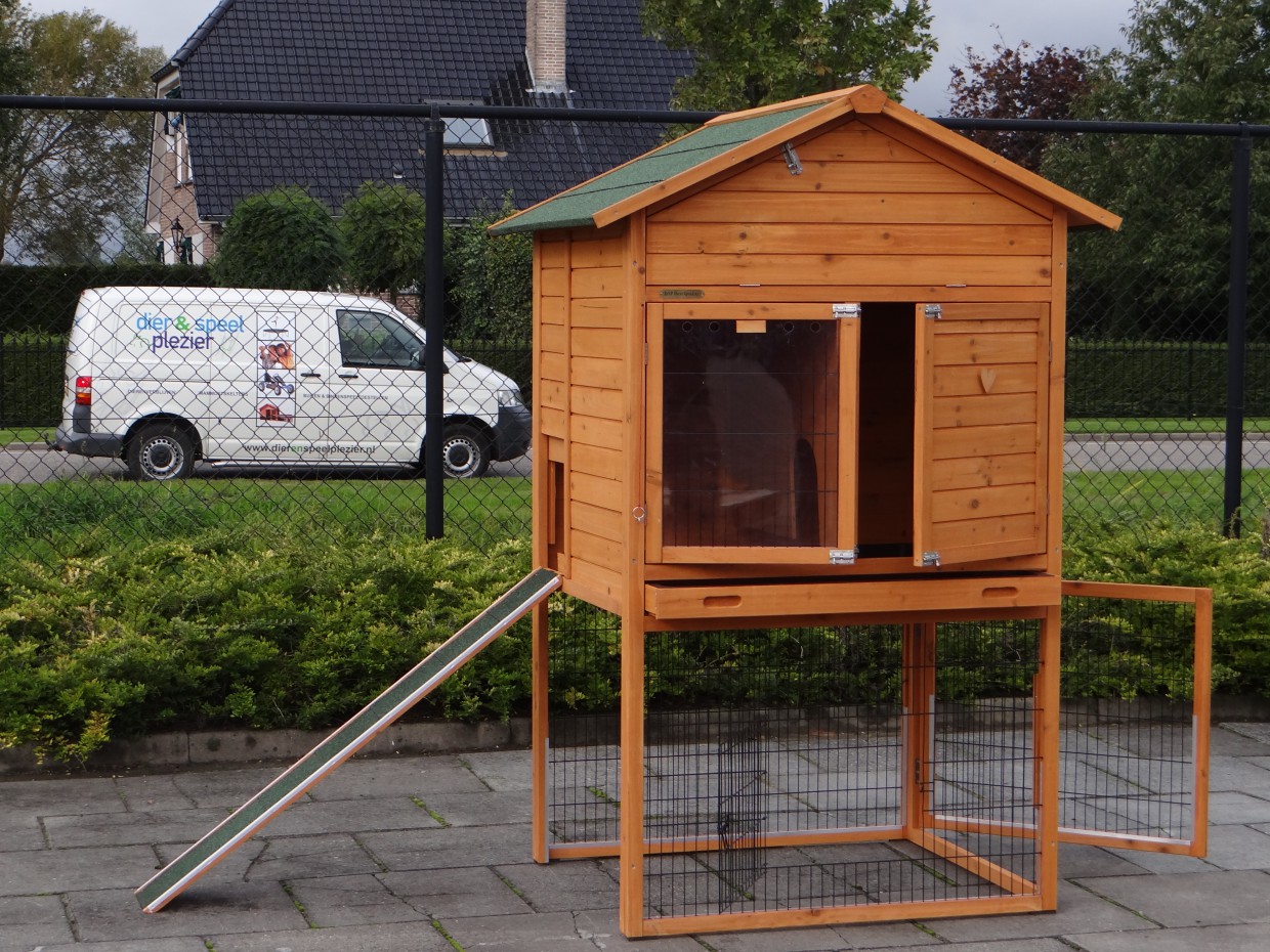 Clapier en bois Prestige Large avec des plaques en plexiglass.