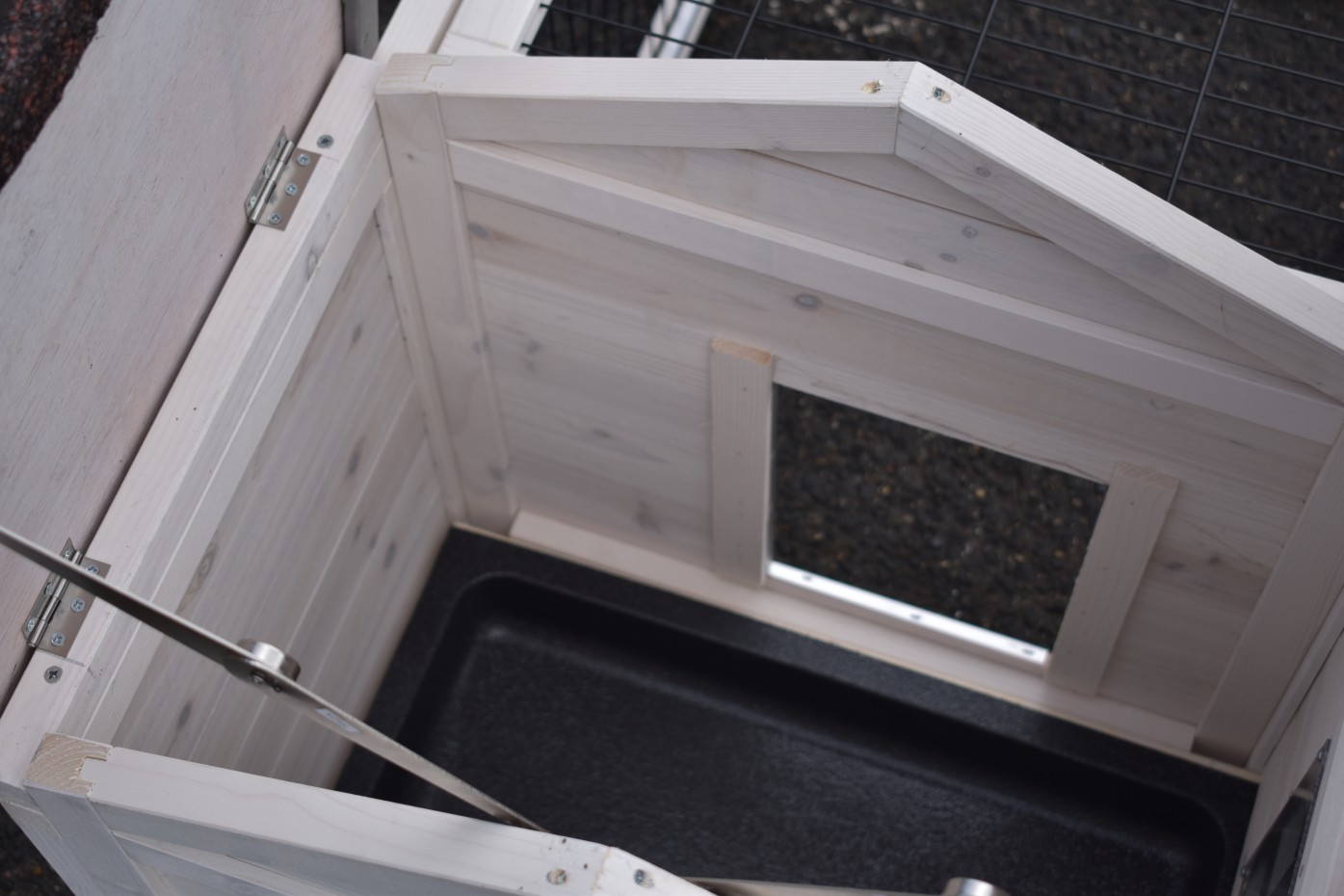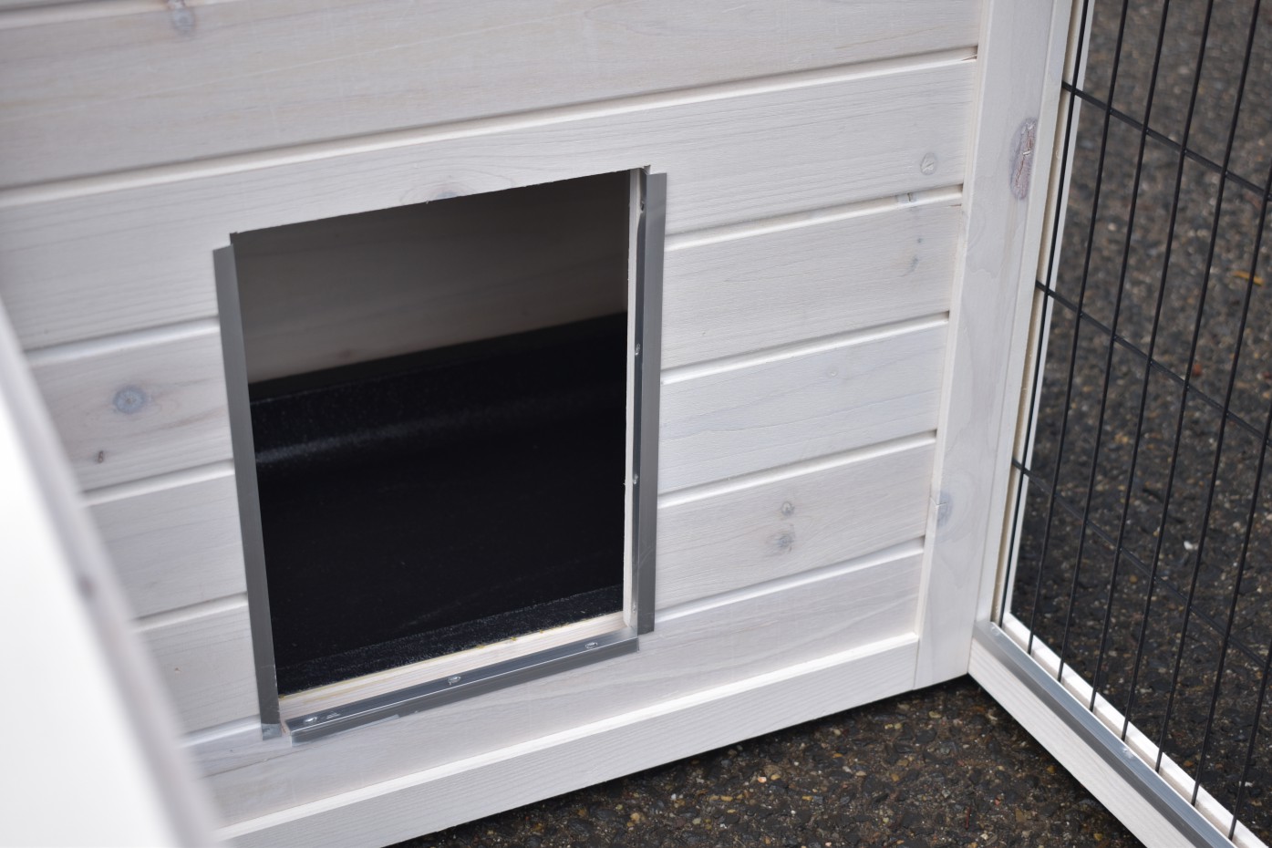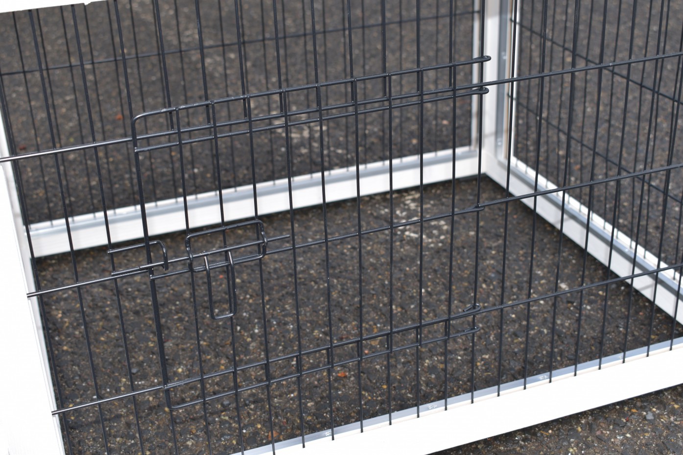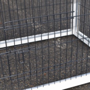 Il est conseillé de traiter périodiquement les charnières et les serrures avec un spray en silicone ou un spray pour serrures pour éviter la rouille et la corrosion. Si l'animal n'est pas dans un endroit abrité, nous vous conseillons d'ancrer l'enclos.