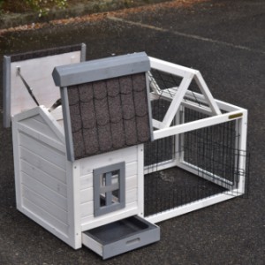 Le bois utilisé pour le loft est un produit naturel unique qu'a été produit dans le pays d'origine, après une sélection rigoureuse, dans une manière traditionelle. C'est caractéristique et unique à tous égards. Ce produit en bois a été un traitement manuel. Aucune pièce de bois ne possède la même forme, la même structure ou la même couleur, de sorte que les nuances de couleur sont inévitables, même dans un morceau de bois. Les fissures dues au vent, les craquelures, les imperfections et la présence de gros et de petits noeuds témoignent de leur origine et de leurs années de croissance. Les bosses sont généralement mises à jour manuellement avec du bois. Grâce à leur utilisation et à l’influence de la lumière, les nouveaux maisons pour animaux auront une couleur plus chaude au fil du temps. Les différences de couleur au modèle d'exposition sont donc possibles. L'enclos pour animaux est munie d'un fini antitache dans les couleurs comme sur la photo. Vous devez encore décaper le bois pour éviter les moisissures et la pourriture. Vous pouvez facilement commander des taches directement.