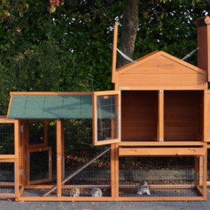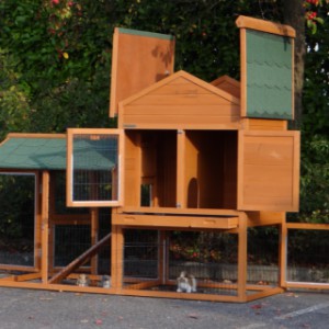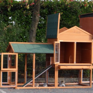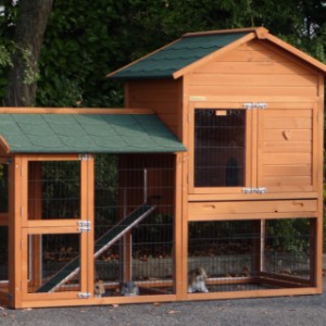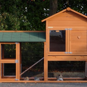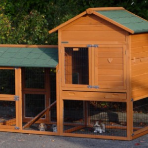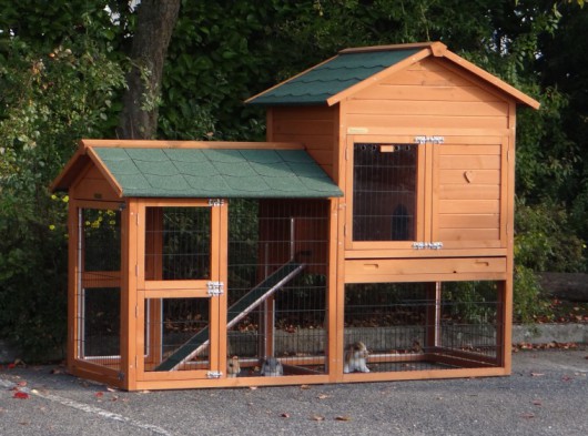 Le bois utilisé pour le loft est un produit naturel unique qu'a été produit dans le pays d'origine, après une sélection rigoureuse, dans une manière traditionelle. C'est caractéristique et unique à tous égards. Ce produit en bois a été un traitement manuel. Aucune pièce de bois ne possède la même forme, la même structure ou la même couleur, de sorte que les nuances de couleur sont inévitables, même dans un morceau de bois. Les fissures dues au vent, les craquelures, les imperfections et la présence de gros et de petits noeuds témoignent de leur origine et de leurs années de croissance. Les bosses sont généralement mises à jour manuellement avec du bois. Grâce à leur utilisation et à l’influence de la lumière, les nouveaux maisons pour animaux auront une couleur plus chaude au fil du temps. Les différences de couleur au modèle d'exposition sont donc possibles. L'enclos pour animaux est munie d'un fini antitache dans les couleurs comme sur la photo. Vous devez encore décaper le bois pour éviter les moisissures et la pourriture. Vous pouvez facilement commander des taches directement.
