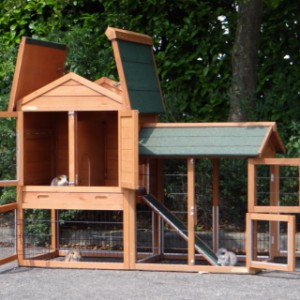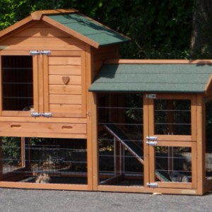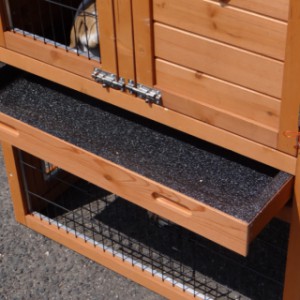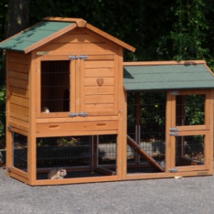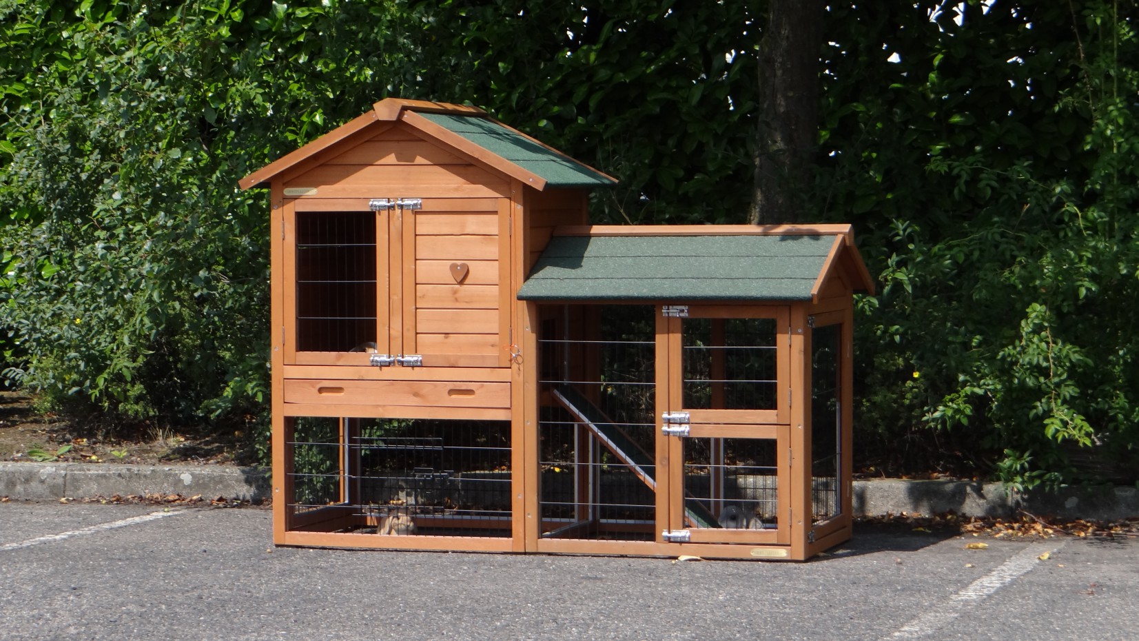 Le bois utilisé pour le loft est un produit naturel unique qu'a été produit dans le pays d'origine, après une sélection rigoureuse, dans une manière traditionelle. C'est caractéristique et unique à tous égards. Ce produit en bois a été un traitement manuel. Aucune pièce de bois ne possède la même forme, la même structure ou la même couleur, de sorte que les nuances de couleur sont inévitables, même dans un morceau de bois. Les fissures dues au vent, les craquelures, les imperfections et la présence de gros et de petits noeuds témoignent de leur origine et de leurs années de croissance. Les bosses sont généralement mises à jour manuellement avec du bois. Grâce à leur utilisation et à l’influence de la lumière, les nouveaux maisons pour animaux auront une couleur plus chaude au fil du temps. Les différences de couleur au modèle d'exposition sont donc possibles. L'enclos pour animaux est munie d'un fini antitache dans les couleurs comme sur la photo. Vous devez encore décaper le bois pour éviter les moisissures et la pourriture. Vous pouvez facilement commander des taches directement.