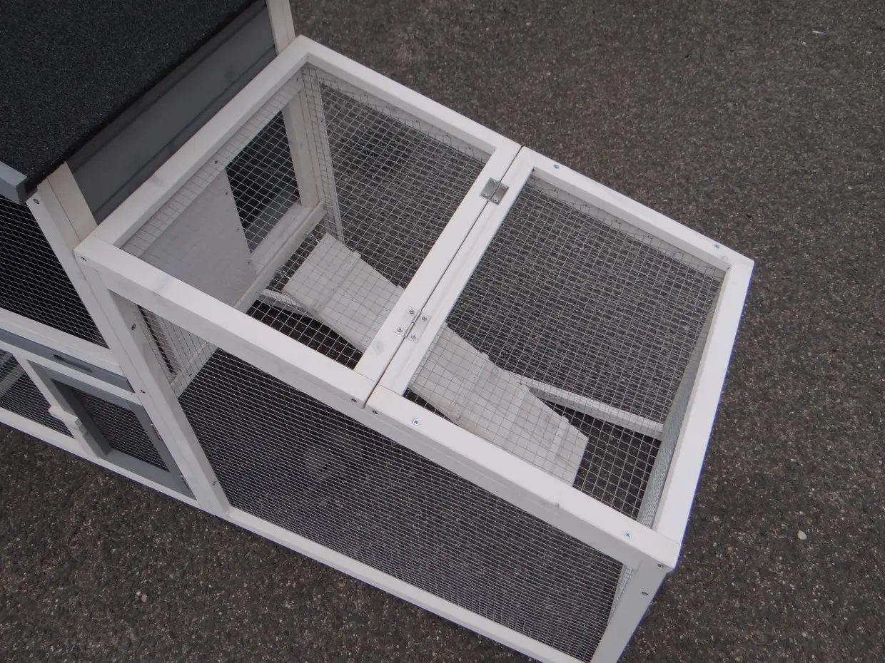 - Le toit d'enclos est équipé de maille (ca. 12x12mm)