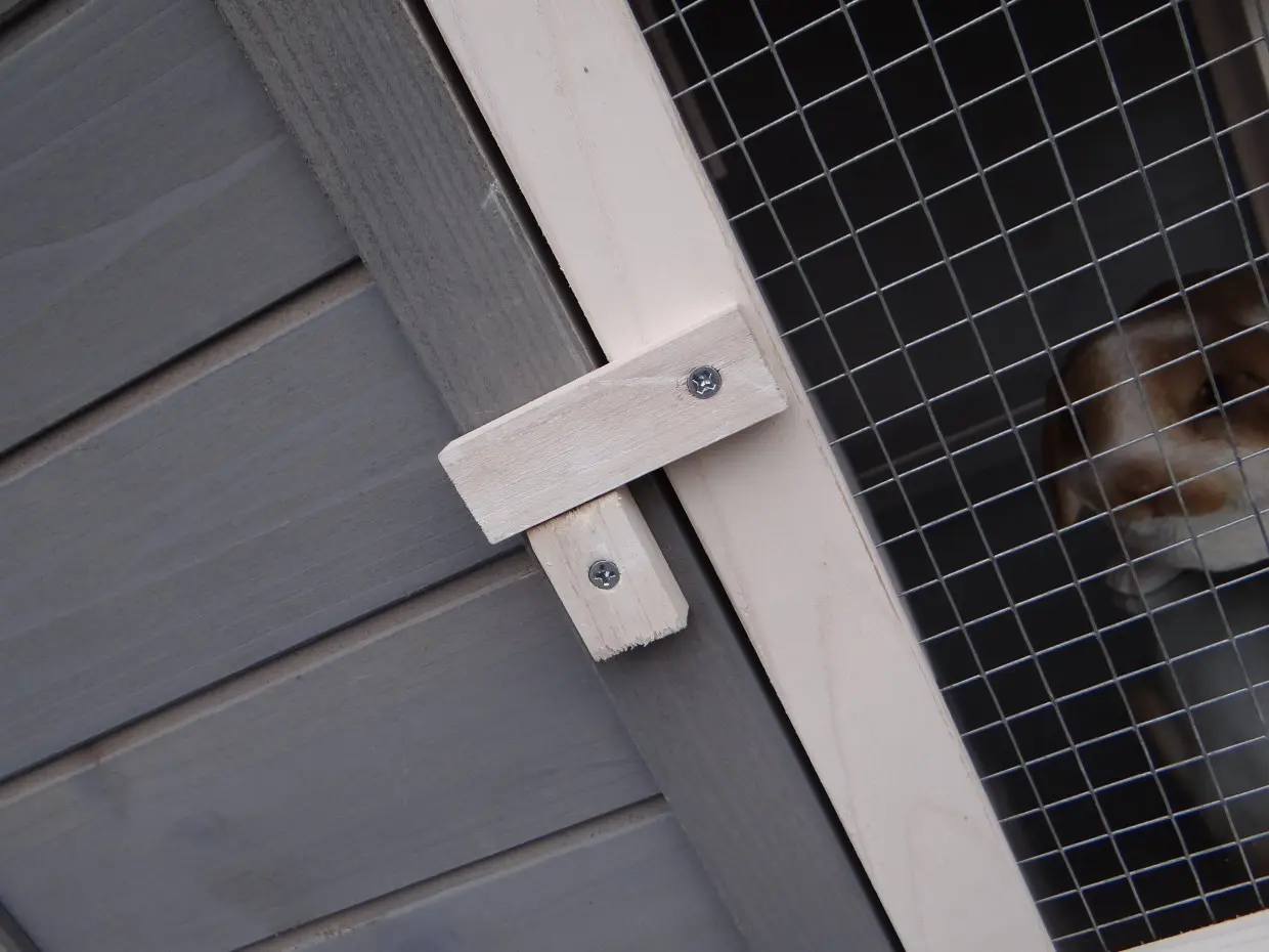 Il est conseillé de traiter périodiquement les charnières et les serrures avec un spray en silicone ou un spray pour serrures pour éviter la rouille et la corrosion. Si l'animal n'est pas dans un endroit abrité, nous vous conseillons d'ancrer l'enclos.