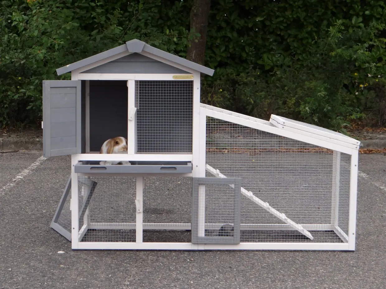 Clapier pour lapin Cato est un clapier bon marché, mais avec un grand enclos. L'enclos a 2 portes et un toit articulé. Clapier pour lapin Cato est un bel clapier pratique pour votre lapin. L'abri de nuit est verrouillable. L'abr i de nuit est équipée avec une tiroir, pour un nettoyage facile.