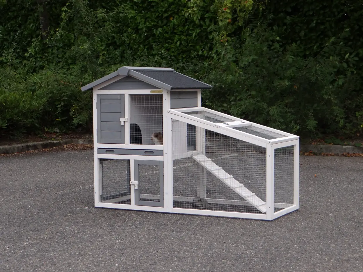 - Ce clapier est équipé d'un toit bitume