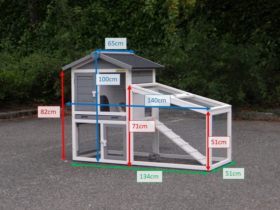 | Dimensions extérieures incluant le toit (LxPxH) | 140x65x100cm |