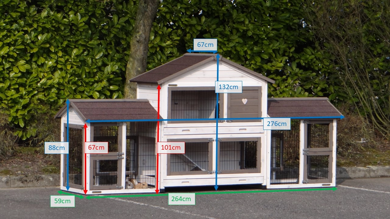 Dimensions extérieures incluant le toit (LxPxH) 276x67x132cm
