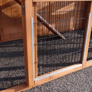 Il est conseillé de traiter périodiquement les charnières et les serrures avec un spray en silicone ou un spray pour serrures pour éviter la rouille et la corrosion. Si l'animal n'est pas dans un endroit abrité, nous vous conseillons d'ancrer l'enclos.