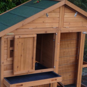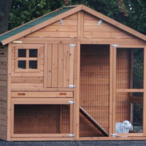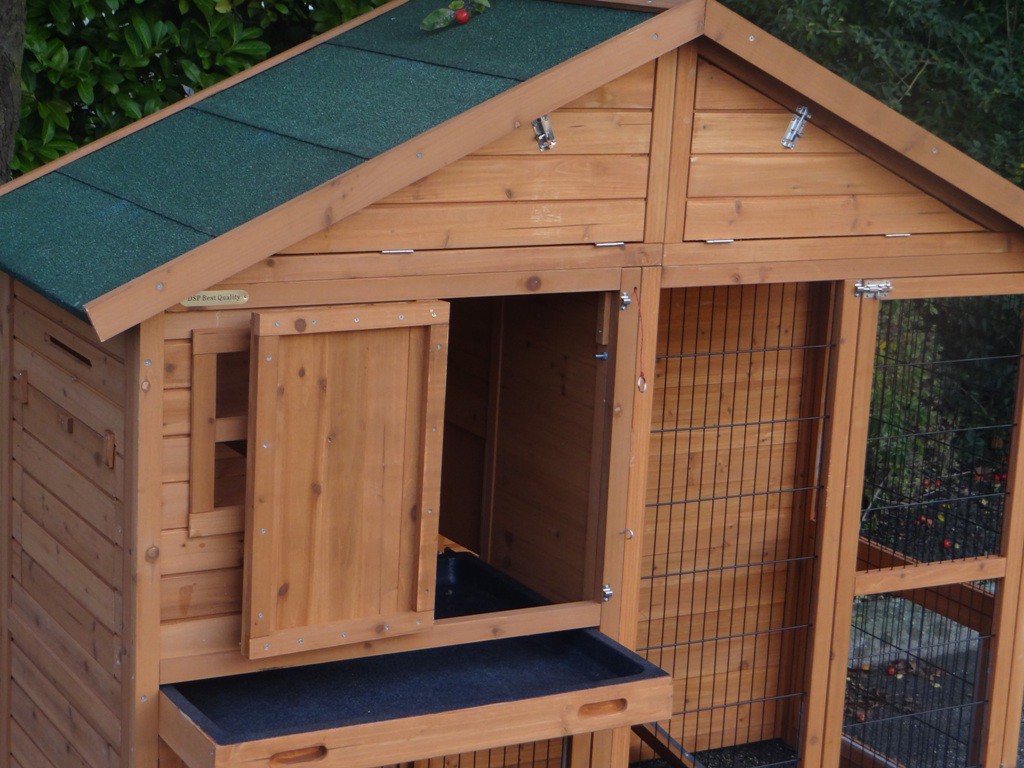 Le bois utilisé pour le loft est un produit naturel unique qu'a été produit dans le pays d'origine, après une sélection rigoureuse, dans une manière traditionelle. C'est caractéristique et unique à tous égards. Ce produit en bois a été un traitement manuel. Aucune pièce de bois ne possède la même forme, la même structure ou la même couleur, de sorte que les nuances de couleur sont inévitables, même dans un morceau de bois. Les fissures dues au vent, les craquelures, les imperfections et la présence de gros et de petits noeuds témoignent de leur origine et de leurs années de croissance. Les bosses sont généralement mises à jour manuellement avec du bois. Grâce à leur utilisation et à l’influence de la lumière, les nouveaux maisons pour animaux auront une couleur plus chaude au fil du temps. Les différences de couleur au modèle d'exposition sont donc possibles. L'enclos pour animaux est munie d'un fini antitache dans les couleurs comme sur la photo. Vous devez encore décaper le bois pour éviter les moisissures et la pourriture. Vous pouvez facilement commander des taches directement.