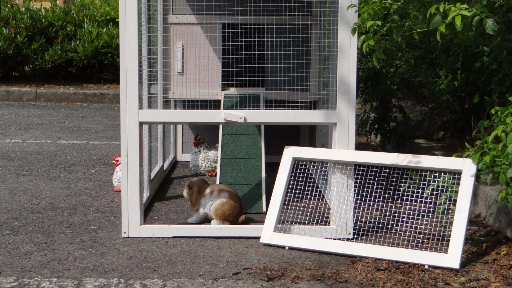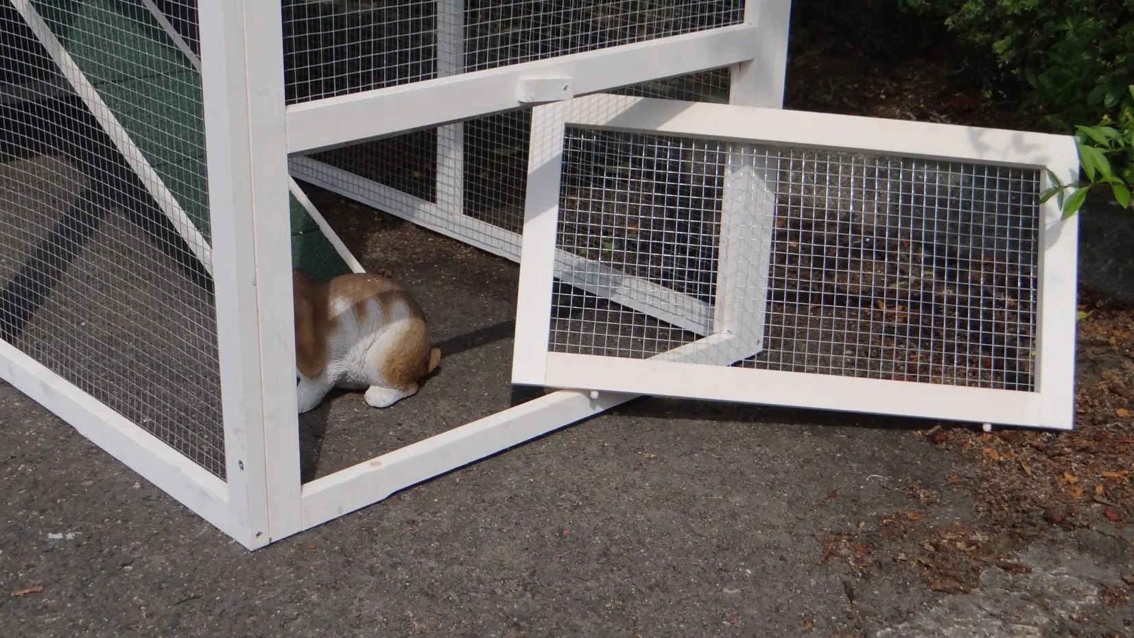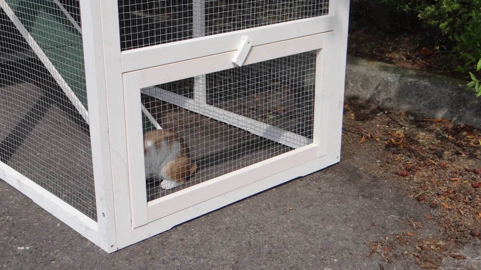 Il est conseillé de traiter périodiquement les charnières et les serrures avec un spray en silicone ou un spray pour serrures pour éviter la rouille et la corrosion. Si l'animal n'est pas dans un endroit abrité, nous vous conseillons d'ancrer l'enclos.