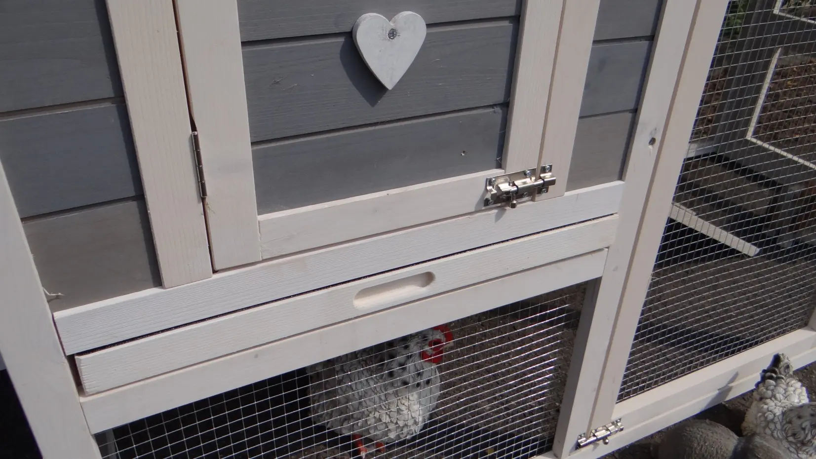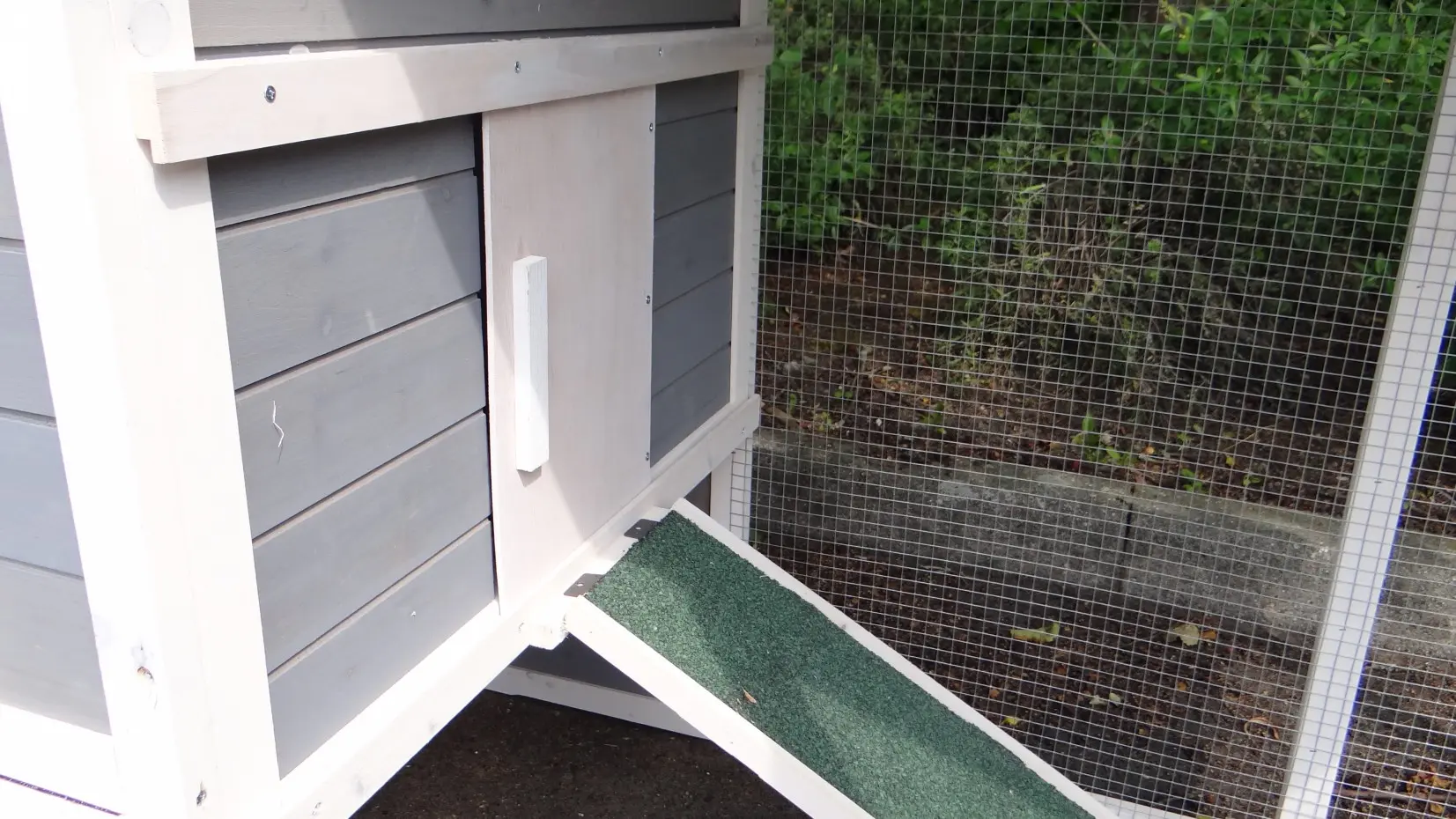 - Pour combiner enclos et poulailler, un panneau de treillis et / ou une porte doit être enlevé