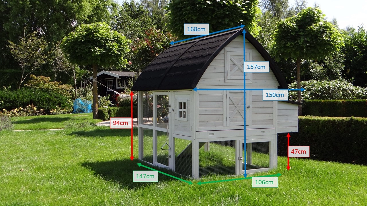 | Dimensions extérieures incluant le toit et nichoir (LxPxH) | 168x150x157cm |