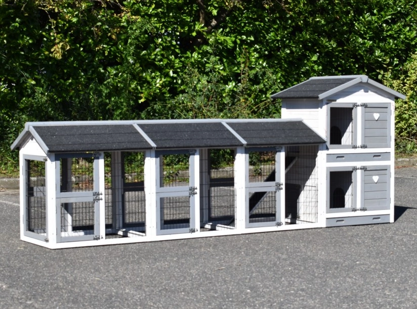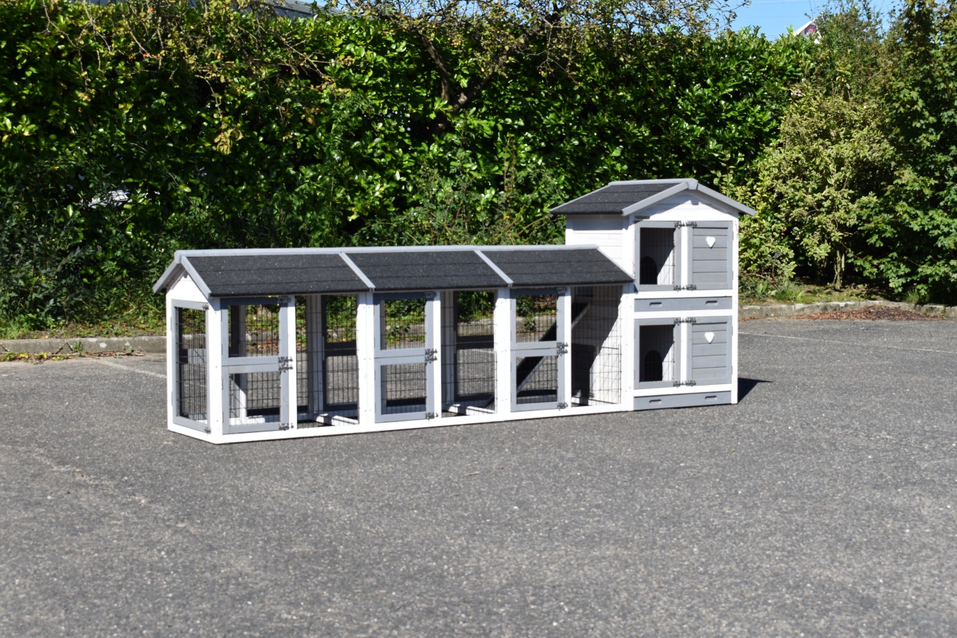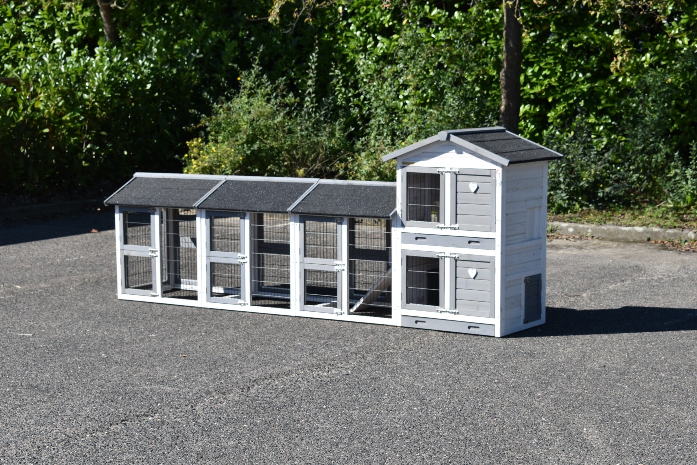 Clapier lapin Double Small avec 3 enclos Dimensions max.: 314x72x121cm | Dimensions au sol: 301x60cm