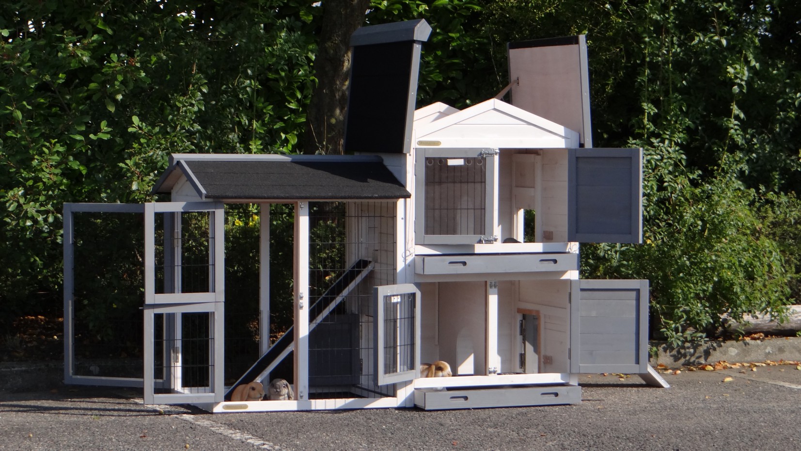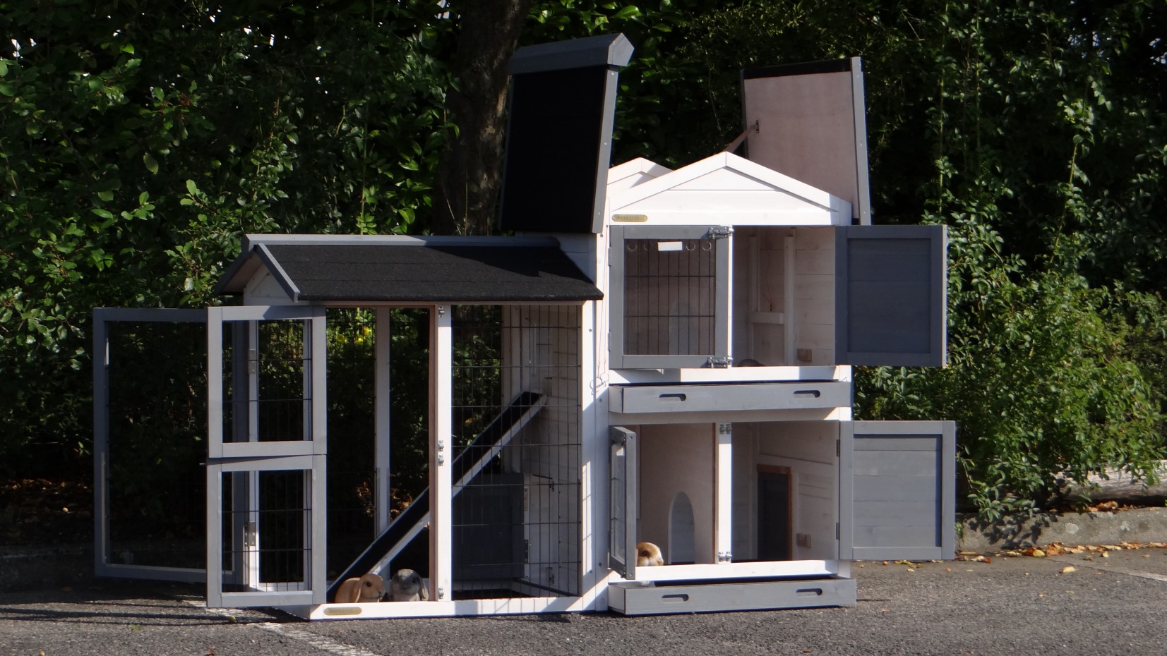 Le clapier à deux tiroirs pour un nettoyage facile.