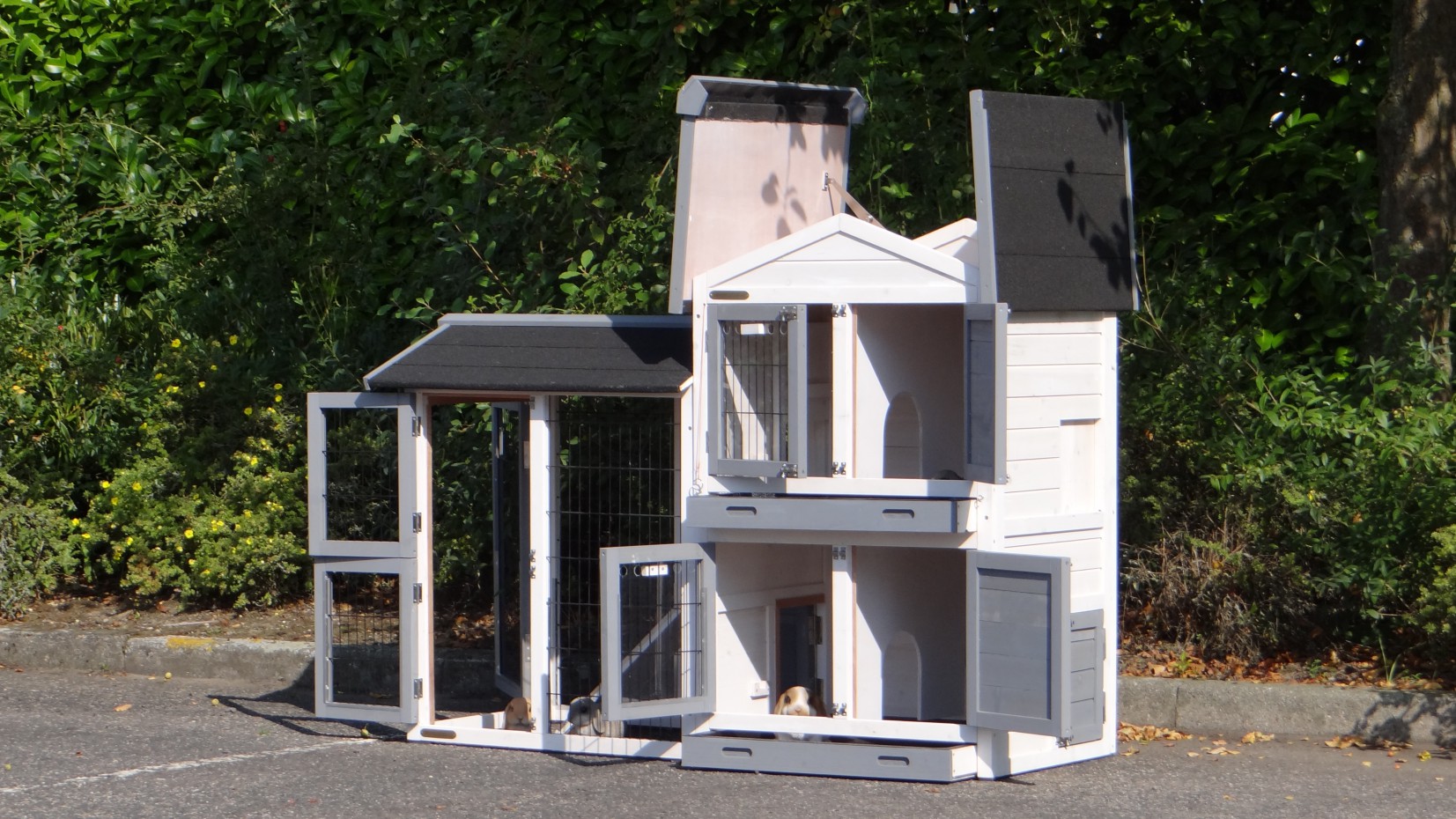 Il est conseillé de traiter périodiquement les charnières et les serrures avec un spray en silicone ou un spray pour serrures pour éviter la rouille et la corrosion. Si l'animal n'est pas dans un endroit abrité, nous vous conseillons d'ancrer l'enclos.