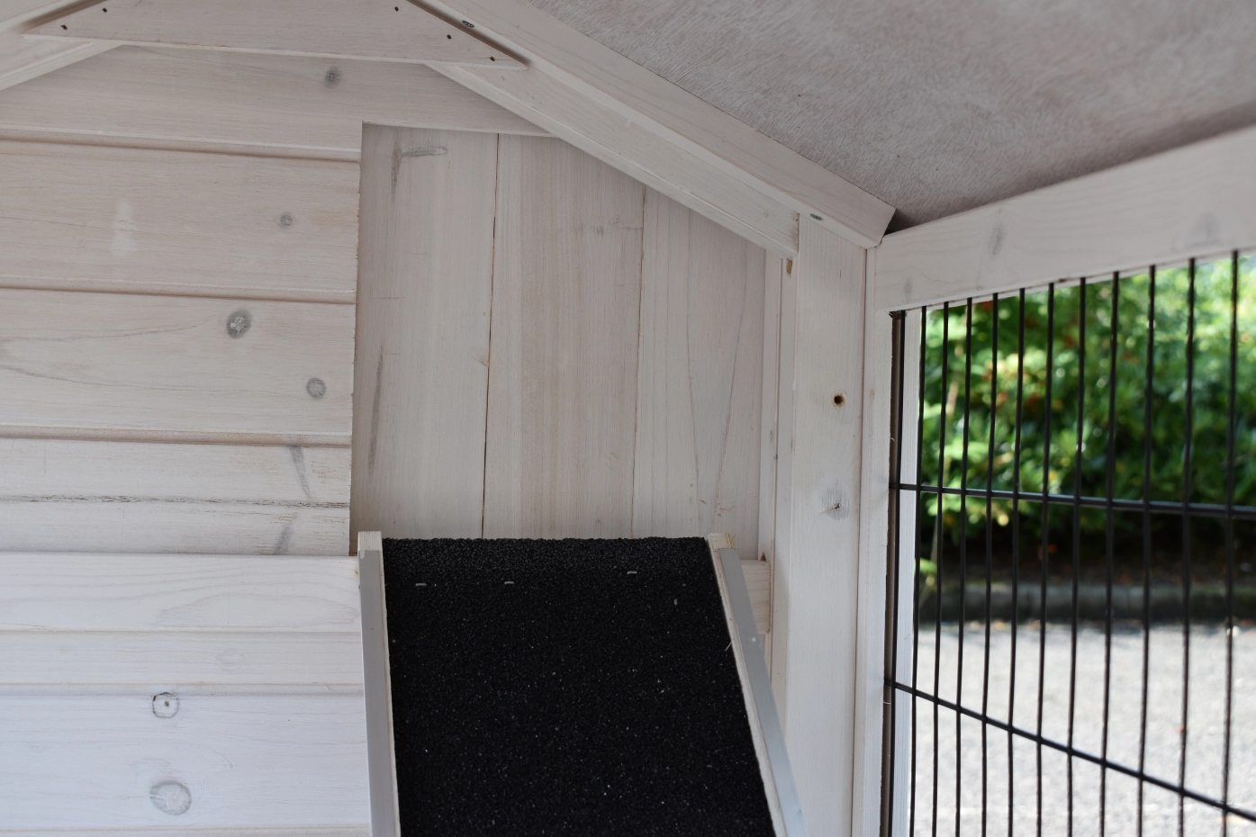 - Si ce n'est pas dans un endroit abrité, nous vous conseillons d'ancrer le clapier / poulailler