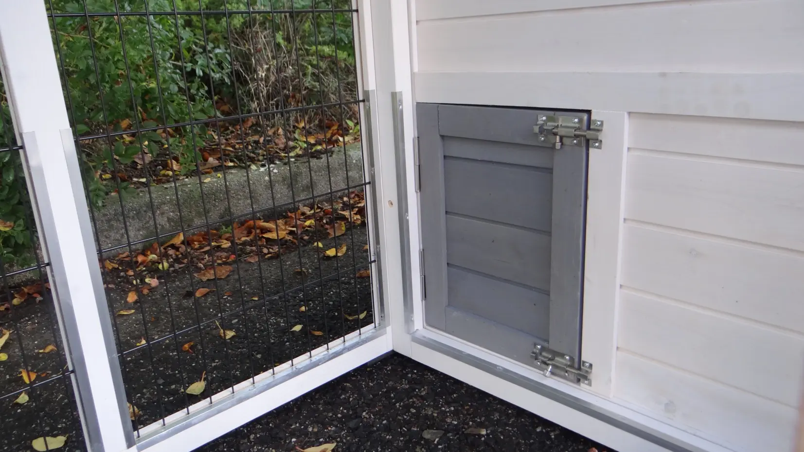 Il est conseillé de traiter périodiquement les charnières et les serrures avec un spray en silicone ou un spray pour serrures pour éviter la rouille et la corrosion. Si l'animal n'est pas dans un endroit abrité, nous vous conseillons d'ancrer l'enclos.